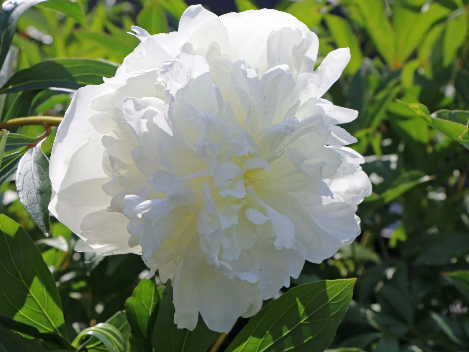 Seit dem Jahre 1851 bezaubert diese schöne Pflanze unsere Gärten. Sie ist seit über 160 Jahren eine geliebte Paeonie in den Gärten dieser Welt. Nach der ganzen Zeit, lässt sie weder Kraft noch Duft noch Schönheit vermissen. Die Asiatische Pfingstrose ‚Festiva Maxima‘ zeigt unermüdlich ihre wunderschönen weißen Blüten. Diese sind mittig mit wenigen purpurroten Flecken geschmückt. Sehr edel! Die Blüten dieser himmlischen Pfingstrose verströmen einen starken Duft. Dadurch wirkt das Gesamtbild der (bot.) Paeonia lactiflora ‚Festiva Maxima‘ stimmig abgerundet. Diese prachtvolle Edel-Pfingstrose zählt zu den allerbesten, weißen, gefüllten Sorten. Einen bemerkens- und sehenswerten Kontrast zu den weißen Kostbarkeiten liefert das zusammengesetzte, im Sommer dunkelgrüne Laub.
