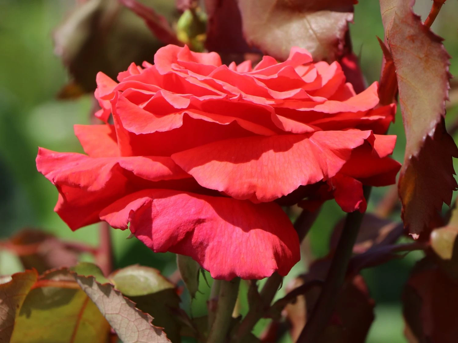 Die Beetrose / Edelrose ‚Duftwolke‘ ® fasziniert mit ihrem imposanten, reichen und lange blühenden Flor. Ihren Namen verdankt sie dem intensiven, betörenden Duft, der die Sinne verführt. Sie gehört zu den besonders früh und öfterblühenden Sorten. Im Juni öffnet sie die ersten wohlgeformten Knospen. Diese entfalten sich zu großen, üppig gefüllten Blüten, die den Gartenbesitzer bis September erfreuen. Die Blüten präsentieren sich in einem flammenden, weithin sichtbaren Korallenrot. Glänzend mittel- bis dunkelgrün zeigt sich das Laub der Rosa ‚Duftwolke‘ ®. Ihre gefiederten Blätter sind oval, laufen spitz zu und weisen einen gesägten Rand auf. Die Beetrose / Edelrose ‚Duftwolke‘ ® wächst aufrecht, buschig und gut verzweigt. Sie erreicht eine Höhe von 50 bis 80 cm und eine Breite von 30 bis 50 cm. 1963 von dem renommierten Rosenzüchter Tantau eingeführt, erhielt die Sorte bereits zahlreiche Preise. Dazu gehören das Prädikat ADR-Rose, die Auszeichnung als „Weltrose“ des Jahres 1981 und die Wahl zur besten Duftrose aller Zeiten im Rosendorf Steinfurth.