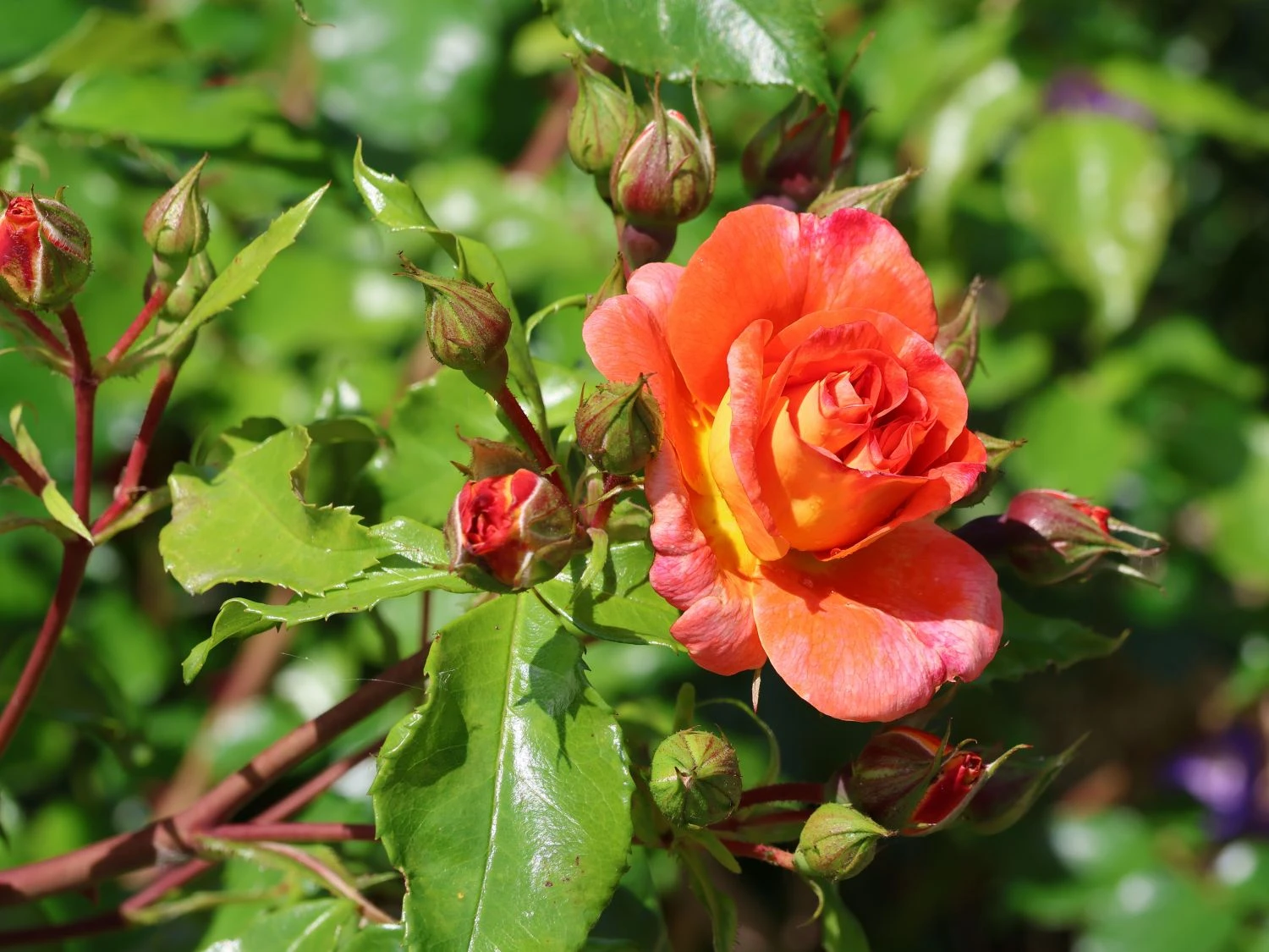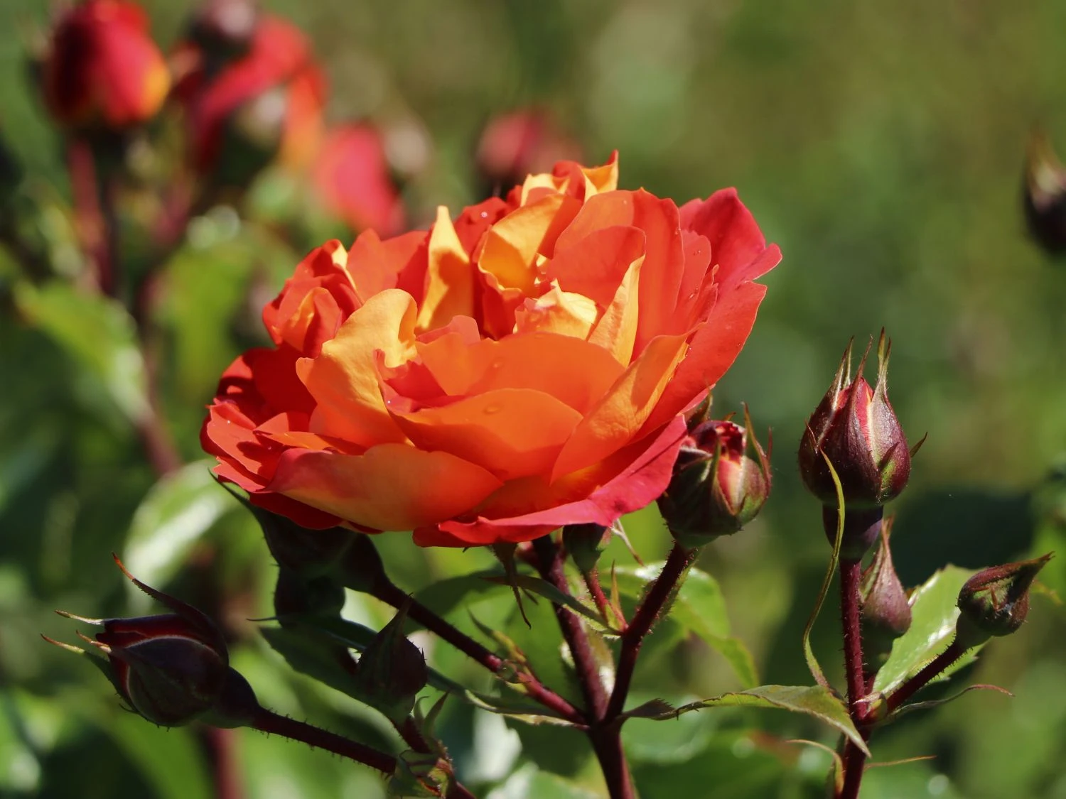Die dunkelgrünen Blätter der sommergrünen Pflanze sind gefiedert und bilden einen tollen Farbkontrast zu den intensiv gefärbten Blüten. Die Beetrose ‚Gebrüder Grimm‘ ® / Joli Tambour bevorzugt einen sonnigen bis halbschattigen Platz. Am besten gedeiht die Märchenrose auf einem tiefgründigen, gut durchlässigen und humosen Boden. Die Rose erweist sich als unkompliziert und wenig arbeitsaufwendig. Sie verschönert mit ihrem nostalgischen Charme Beete und Rabatten. Großartig sieht sie zusammen mit Steppensalbei, Lavendel, Rittersporn oder Waldrebe aus. In dieser farbkräftigen Pflanzkombination setzt Rosa ‚Gebrüder Grimm‘ ® / Joli Tambour schöne Akzente im Garten. Sie verschönert im Kübel jeden Standort, ob auf Terrasse, Balkon oder am Hauseingang. Als Schnittpflanze verschönert sie Sträuße und Gestecke, und ihr Duft erfüllt den Raum. Fantastisch wirkt die Beetrose ‚Gebrüder Grimm‘ ® / Joli Tambour in einer Gruppe. Auf einem Quadratmeter finden vier bis fünf Pflanzen dieser Sorte ausreichenden Platz. Beim Einsetzen achtet der Gärtner auf einen Pflanzabstand von mindestens 60 cm zu den Nachbarpflanzen. Die Beetrose ist gut winterhart und erfreut den Rosenfreund viele Jahre lang.