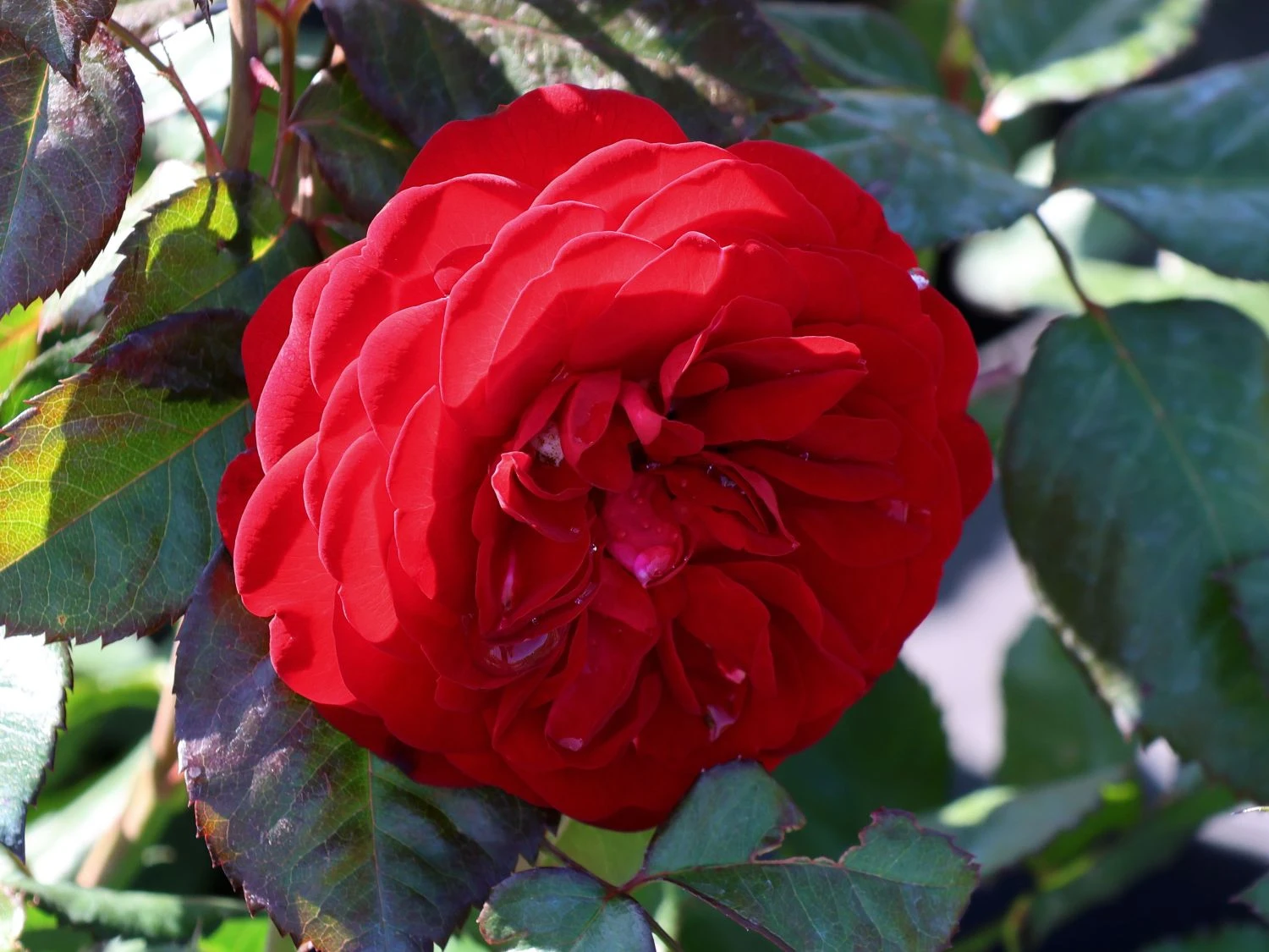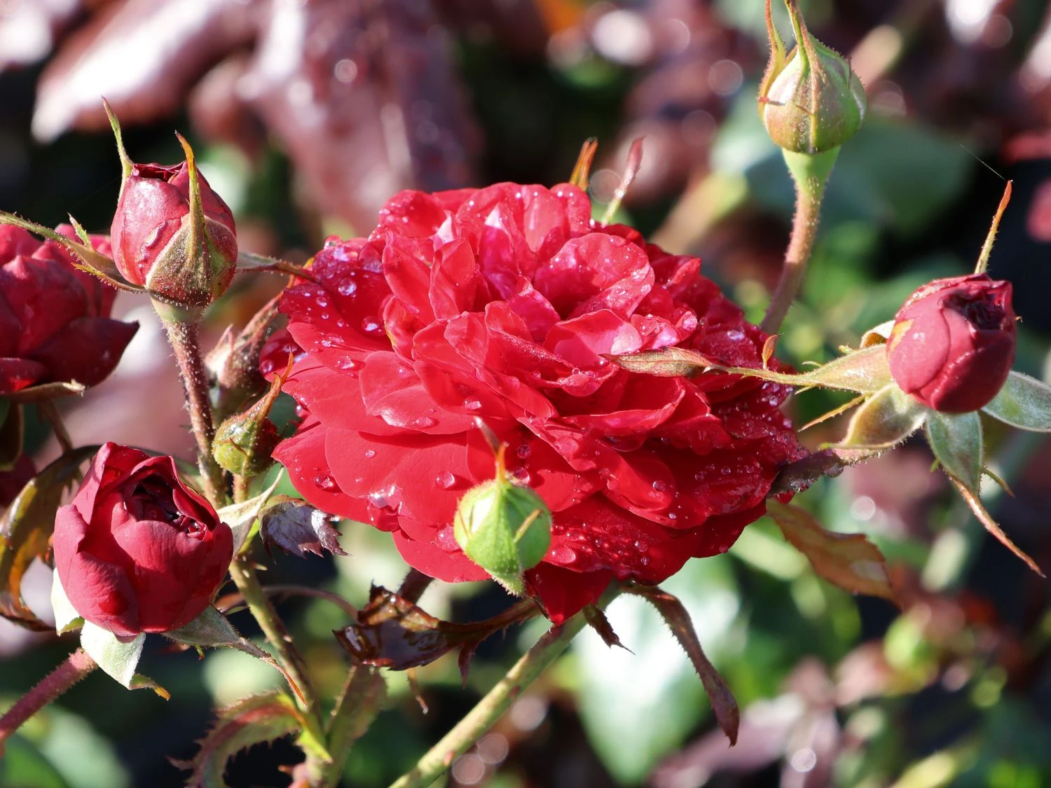 Die Beetrose ‚Kordes Rose Mariandel‘ ® ist mit ihrem eleganten, dunklen Flor und dem einzigartigen Blütenreichtum ein fabelhafter Blickfang im Garten. Ihre edel gefüllten, schalenförmigen Blüten leuchten tief dunkelrot bis blutrot. Sie sitzen in großer Zahl an dichten Dolden und sorgen für ein flammendes Blütenmeer. Mit ihrem leichten, betörenden Wildrosenduft beleben sie die Sinne. Von Juni bis September präsentiert die öfterblühende Sorte ihre Blütenpracht. Eine hervorragende Blattgesundheit kennzeichnet (bot.) Rosa ‚Kordes Rose Mariandel‘ ® aus. Die Pflanze besitzt wechselständig angeordnete, gefiederte Blätter mit gesägtem Rand. Im Austrieb zeigt sich ihr Laub in zartem Rot. Mit der Zeit verwandelt es seinen Farbton in ein glänzendes Dunkelgrün. Die Beetrose ‚Kordes Rose Mariandel‘ ® wächst aufrecht, buschig und kompakt. Sie erreicht eine Höhe von 50 bis 70 cm und wird 30 bis 50 cm breit. Der berühmte Rosenzüchter W.Kordes‘ Söhne brachte die Sorte 1985 auf den Markt. Auf internationalen Rosenschauen gewann sie bereits mehrere Preise.
