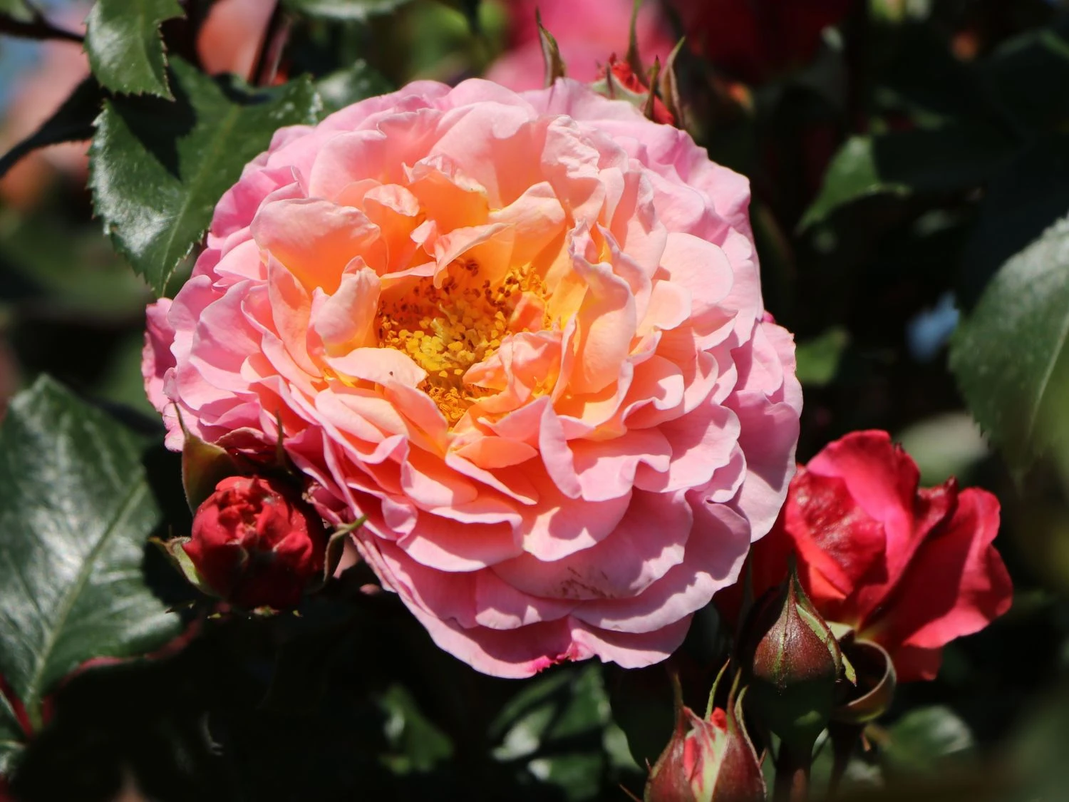 Die Beetrose ‚Marie Curie‘ ® ist prächtige Schönheit unter den Beetrosen. Seit 1997 gibt es die vom bekannten Züchter Meilland gezüchtete Sorte. Ein großer Gewinn für alle Rosenliebhaber exklusiver Sorten unter den Königinnen des Gartens. Ob für eine Beetgestaltung einzeln gesetzt oder in eindrucksvoller Gruppenanpflanzung, die Rose ‚Marie Curie‘ ® überzeugt auf der ganzen Linie. Ihre prächtige und imposante Schönheit präsentiert sie während einer überaus langen Blütezeit und beschert ihren Besitzern einen unglaublich lange anhaltenden Blütenflor im Garten. Der buschige und stark aufrechte Wuchs der Beetrose ‚Marie Curie‘ ® ist mit verantwortlich für die attraktive Optik dieser Rosensorte. (Bot.) Rosa ‚Marie Curie‘ ® erreicht in der Höhe circa 60 bis 80 Zentimeter und in der Breite um die 40 Zentimeter. In einem humosen Gartenboden an einem sonnigen bis halbschattigen Platz, fühlt sich die Rose ausgesprochen heimisch. Damit sind gute Vorraussetzungen für ein kräftiges und gesundes Wachstum geschaffen. Die schöne Beetrose ‚Marie Curie‘ ® ist eine schnittverträgliche Sorte. Sie eignet sich aus diesem Grund ausgesprochen gut als Schnittpflanze in Sträußen oder dekorativen Gestecken. Ab Mai zeigen sich nach und nach die beeindruckenden Blüten der Rose. Die Blüten sind von mittlerer Größe und erreichen im Durchmesser um die fünf bis acht Zentimeter. Sie sind zauberhaft koloriert in rosa bis aprikot. Beide Farben mischen sich und ergeben einen wunderschönen sowie auffälligen Farbklecks im Rosenbeet.