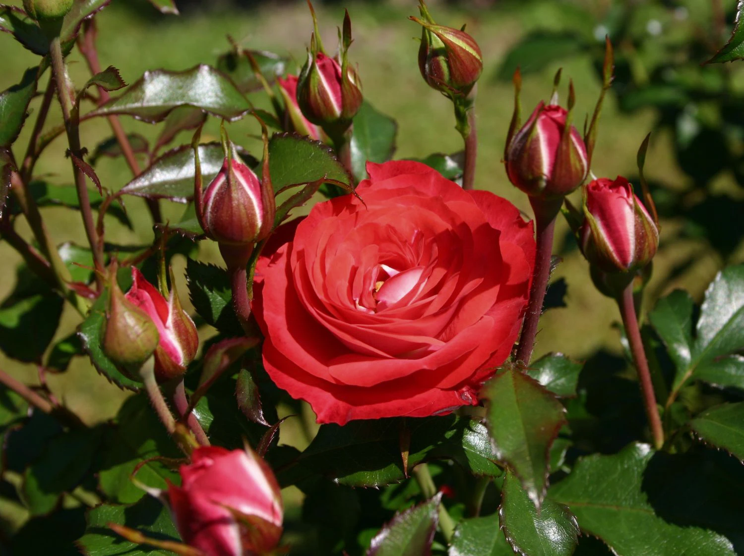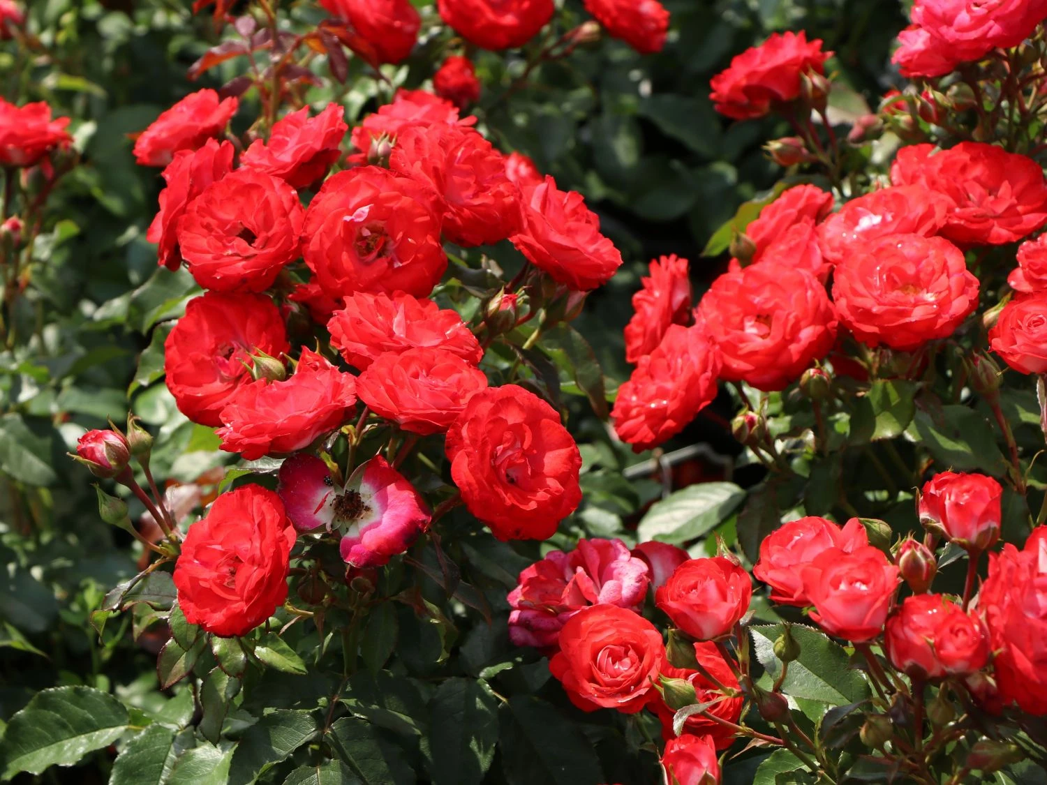 Die Beetrose ‚Planten un Blomen‘ begeistert durch ihr farbintensives Farbspiel. Die halbgefüllten Blüten der Rosa ‚Planten un Blomen‘ ADR-Rose erinnern an die Farben der Hansestadt Hamburg. Benannt ist die wunderschöne Beetrose nach der Parkanlage im Stadtzentrum. Ihre Blüten leuchten, sind stark gefüllt und haben einen Durchmesser von fünf bis sechs Zentimeter. Die Blüten stehen in Dolden an den aufrecht wachsenden Trieben. Die Blütezeit von ‚Planten un Blomen‘ ist lang und dauert von Juni bis in den September. Sie erreicht eine Wuchshöhe von 60 bis 80 Zentimeter und einen Durchmesser von 30 bis 50 Zentimeter. Die Rosa ‚Planten un Blomen‘ ADR-Rose verschönert mit ihrer Blütenpracht Beete und Rabatten. Sie lässt sich einzeln pflanzen und überzeugt in der Gruppe. Auf einem Quadratmeter finden vier bis fünf Exemplare ausreichenden Platz, um sich eindrucksvoll zu entfalten. Die öfterblühende Beetrose ‚Planten un Blomen‘ produziert den ganzen Sommer kontinuierlich neue Blüten. Steigern lässt sich der fantastische Eindruck von ‚Planten un Blomen‘ noch durch passende Pflanzpartner. Hier sind weißblühende Stauden oder Rosen, blauviolett blühender Lavendel und dunkelgrüner Buchsbaum tolle Begleiter.