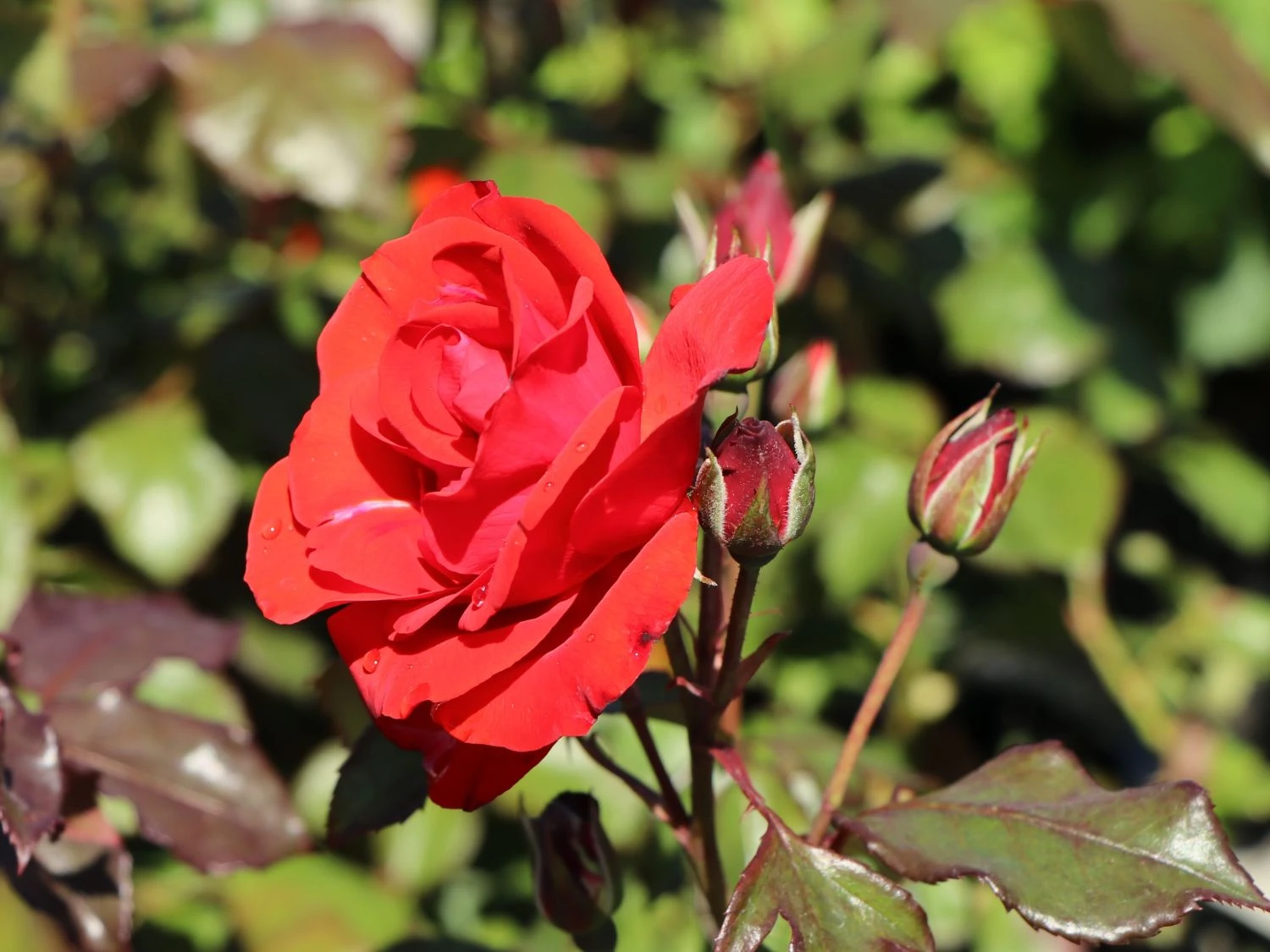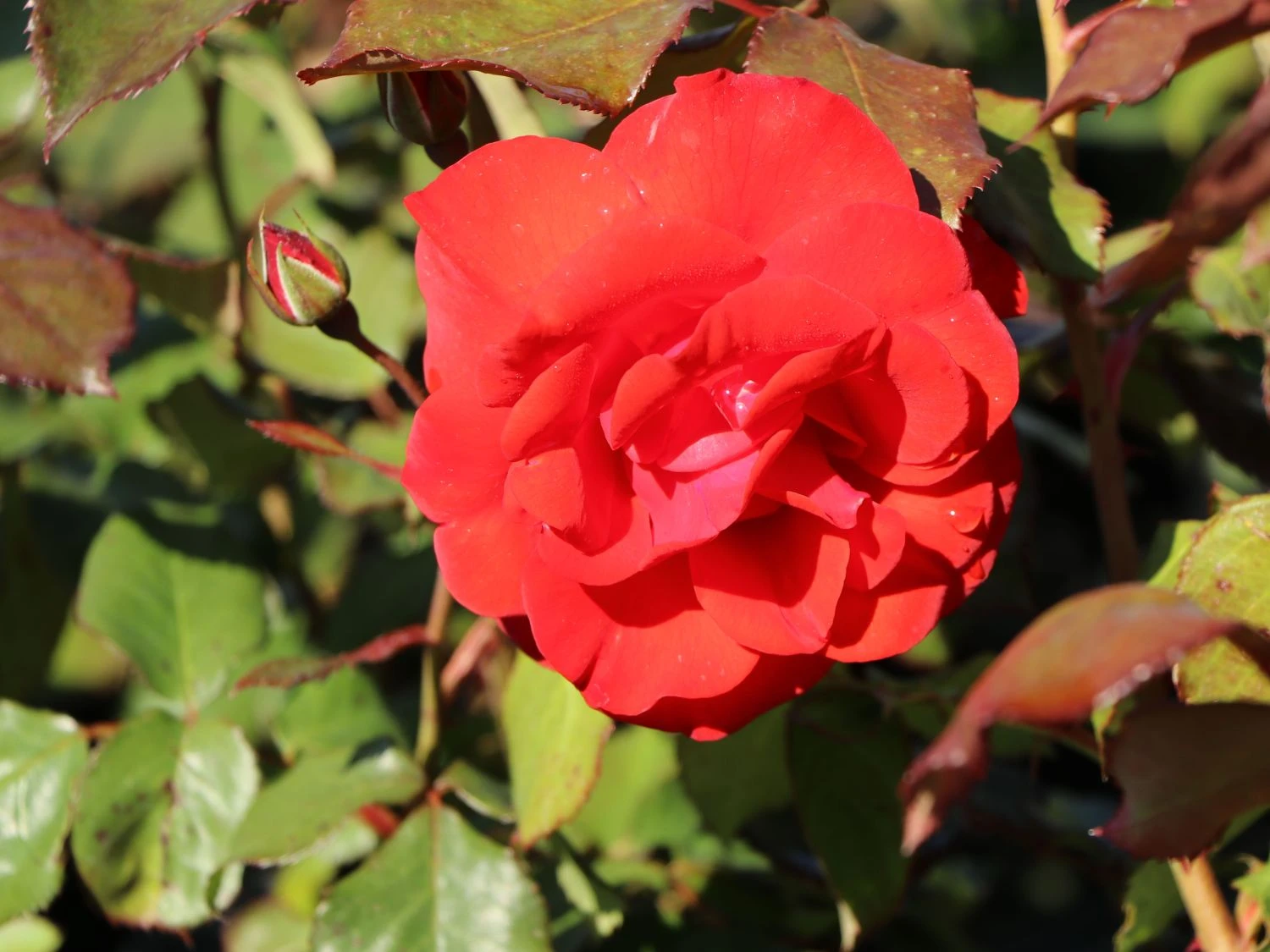 Die Beetrose ‚Stadt Eltville‘ ® bringt Farbe in den Garten. Sie entwickelt dichtes, dunkelgrünes Laub über dem vielfach verzweigte Blütendolden leuchten. Die mittelgroße Einzelblüte ist locker mit gewellten Blütenblättern gefüllt und entfaltet sich zu einem flachen Blütenbecher. Von Anfang Juni bis in den September entstehen ständig neue Blüten. Von der jungen Knospe bis zur voll entfalteten Rosenblüte zeigt sich jede Blütephase an (bot.) Rosa ‚Stadt Eltville‘ ®. Ihre intensive rote Farbe wirkt sowohl in kleinen Gruppen als auch in großen Rosenbeeten wunderschön. Die Farbe passt perfekt zu pastellfarbenen Blüten anderer Rosensorten. Ihre endgültige Höhe hat die Beetrose ‚Stadt Eltville‘ ® mit 80 c, erreicht. Sie umgibt als kleine Gruppe ein Rosenstämmchen, verschönert den Fuß von Kletterrosen und setzt Farbflecke in einem Beet abgeblühter Edelrosen. Die üppigen Blütenbüschel von Rosa ‚Stadt Eltville‘ ® schmücken als Schnittblumen eine kleine Vase.