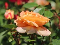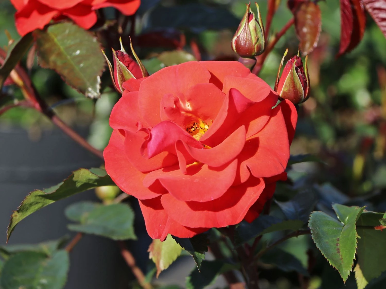 Mit der Beetrose ‚Westpoint‘ ® lässt sich im Garten ein optisches Leuchtfeuer entzünden. Kein Garten vorhanden? Kein Problem! Denn Rosa ‚Westpoint‘ ® entfaltet ihren charmanten Zauber auch in einem Kübel. Somit ist diese fantastische Beetrose auch eine Bereicherung für Balkone und Terrassen, solange hier ausreichend Sonne vorhanden ist. Der Wuchs der Beetrose ‚Westpoint‘ ® ist kompakt und herrlich buschig. Dadurch ist sie an jeder Stelle ein schöner Blickfang und lässt sich perfekt in jede Gartensituation integrieren. Die Beetrose ‚Westpoint‘ ® ist am besten an einem sonnigen bis halbschattigen Standort aufgehoben. Der ideale Boden ist nährstoffreich, humos, locker, frisch bis feucht und gut durchlässig. Rosen sind Tiefwurzler, das heißt, sie möchten ihre Wurzeln sehr tief in den Boden strecken. Um dies auch auf dem Balkon oder auf der Terrasse zu ermöglichen, ist es wichtig, der Rose ein ausreichend hohes Gefäß zu bieten. Auf einer größeren Fläche passen drei bis vier Exemplare auf einen Quadratmeter zusammen. Auf diese Weise lässt sich das großartige Leuchtfeuer der halbgefüllten Blüten noch verstärken. In der Höhe wächst die Rose auf rund 60 bis 70 Zentimeter heran. In der Breite ist mit 30 bis 50 Zentimetern zu rechnen. Der leichte Blütenduft ist angenehm blumig und sorgt an jeder Stelle für einen herrlichen Hauch des Sommers.