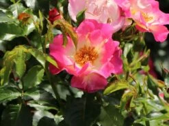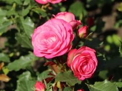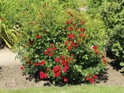 Die laubabwerfende Bodendeckerrose ziert sich mit gefiederten Blättern. Diese sind dunkelgrün und heben die Leuchtkraft der Blüten markant hervor. Einen tollen Kontrast bilden die gelben Staubgefäße in der Blütenmitte. Sie verleihen dieser Bodendeckerrose ihr charakteristisches Aussehen. Die Bodendecker-Rose / Beetrose ‚Fortuna‘ ® bereichert jeden Garten und wirkt auch im Topf am Hauseingang oder auf dem Balkon großartig. Die verblühten Blüten schneidet der Rosenliebhaber regelmäßig ab. Dadurch regt er die Rose zur weiteren Blütenbildung an. Diese Bodendeckerrose ist robust und unkompliziert. Kein Wunder, dass die Bodendecker-Rose / Beetrose ‚Fortuna‘ ® das begehrte ADR-Siegel trägt, mit dem Experten nur blattgesunde und widerstandsfähige Sorten auszeichnen. Sie bevorzugt normale, frische, humose und tiefgründige Erde. Auch Wind oder Regen machen der Rosa ‚Fortuna‘ ® ADR-Rose wenig aus. Die beste Grundlage für eine große Blütenfülle ist ein sonniger oder halbschattiger Platz im Garten.