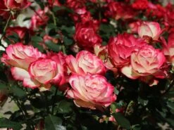 Die Bodendecker-Rose / Beetrose ‚Fortuna‘ ® ist ein Glücksfall für jeden Garten. Öffnet sie ihre ungefüllten Blütenschalen, lassen fleißige Bienen und andere Bestäuberinsekten nicht lange auf sich warten! Außerdem begeistert die (bot.) Rosa ‚Fortuna‘ ® ADR-Rose mit der Leuchtkraft ihrer Blüten. Die Rose wächst breitbuschig und eignet sich mit ihrem niedrigeren Wuchs optimal für kleinere Gärten und Beete, Stein- oder Heidegärten. Diese traumhaft schöne Sorte entstammt dem Hause des bekannten Rosenzüchters W. Kordes‘ Söhne. Die bodendeckende Beetrose ist seit 2002 auf dem Markt und erhielt im selben Jahr das ADR-Prädikat. Im Juni öffnen sich ihre schönen Knospen, so dass sich kleine zart-lachsrosa Blüten entfalten. Diese sind nicht gefüllt und locken mit zartem Duft Bienen und Hummeln an. Die Blüten stehen in Dolden an den Trieben und ziehen alle Blicke magisch an. Rosa ‚Fortuna‘ ® ADR-Rose präsentiert sich in spektakulärer Blütenpracht dem Betrachter und ist eine Attraktion an jedem Standort. Sie erreicht eine Höhe von rund 60 cm und wird rund 50 cm breit. Trotz ihrer geringen Größe stiehlt die Bodendecker-Rose / Beetrose ‚Fortuna‘ ® vielen Pflanzen im Gartenbeet die Show.