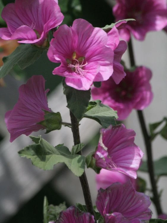 Die in hellem Purpur gefärbten Blüten erinnern in ihrer Farbe an einen guten Rotwein. Die Ausstrahlung der Lavatera x olbia ‚Burgundy Wine‘ erzeugt ein romantisches und mediterranes Flair. Ihre anspruchslosen Eigenschaften haben der Staude eine große Beliebtheit beschert. Sie haben die Pflanze Einzug in Gärten halten lassen, in denen Gärtner, ohne einen zu großen Aufwand zu betreiben, eine große Wirkung erzielen. Die Buschmalve ‚Burgundy Wine‘ ist laubabwerfend und erhält im Herbst einen Rückschnitt. Dieser erfolgt großzügig und gibt der Pflanze neue Kraft für den Austrieb im Frühjahr. Kübelpflanzen überwintern an einen kühlen und frostfreien Ort. Hier bieten sich der Keller oder die Garage an. Im Freiland gepflanzte Stauden überwintern draußen. Hier ist ein Frostschutz notwendig. Über dem Wurzelballen bringt der Gärtner eine Schicht Tannengrün oder Reisig auf. Die Pflanze wächst zwar buschartig und wirkt auch wie ein verholzender Busch, aber sie treibt im Frühjahr wieder aus den Boden aus. Somit können alle Pflanzenteile im Spätherbst entfernt werden. Das Laub der Buschmalve ‚Burgundy Wine‘ ist graugrün und zeigt sich an den Blattunterseiten heller als auf der Oberfläche. Der dekorative Kontrast zwischen den kräftig gefärbten Blüten und dem Laub sorgt für viel Aufmerksamkeit. In Gruppen oder solitär gepflanzt, begeistert die Staude mit ihrer Ausstrahlung und sorgt für eine attraktive Atmosphäre im Garten. Für kleine Grundstücke eignet sie sich nur bedingt. Durch die Höhe und enorme Breite benötigt die Staude Platz für ihren kräftigen und buschigen Wuchs.