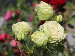 Die Edelrose ‚Ambiente‘ ® setzt mit ihren aparten Blüten romantische Akzente im Garten. Sie begeistert mit ihrer langen Blütezeit, den besonders lange haltbaren Blüten und der hervorragenden Blattgesundheit. Ihr herrlicher Flor verschönert den Garten von Juni bis September. Die schalenförmigen Blüten zeichnen sich durch ihre edle Form und die starke Blütenfüllung aus. Sie präsentieren sich in elegantem Cremeweiß, die Blütenmitte schimmert in zartem Cremegelb. Mit ihrem leichten, anmutigen Duft betören sie die Sinne. Das robuste Laub der Rosa ‚Ambiente‘ ® bildet mit seinem dunklen, glänzenden Grün einen phantastischen Kontrast zu den hellen Blüten. Es ist gefiedert, oval geformt und besitzt einen gesägten Rand. Gegenüber Blattkrankheiten ist das Laub unempfindlich. Die Edelrose ‚Ambiente‘ ® wächst aufrecht, buschig und gut verzweigt. Ihre Höhe liegt zwischen 70 und 80 Zentimetern, die Breite beträgt 40 bis 50 Zentimeter. Im Jahr 2001 brachte der Züchter Noack die Sorte auf den Markt.