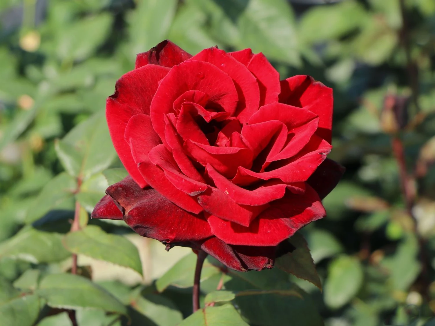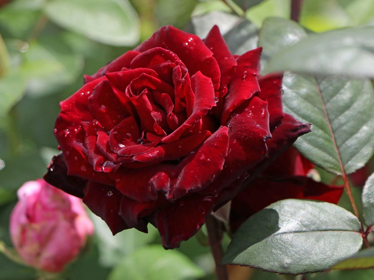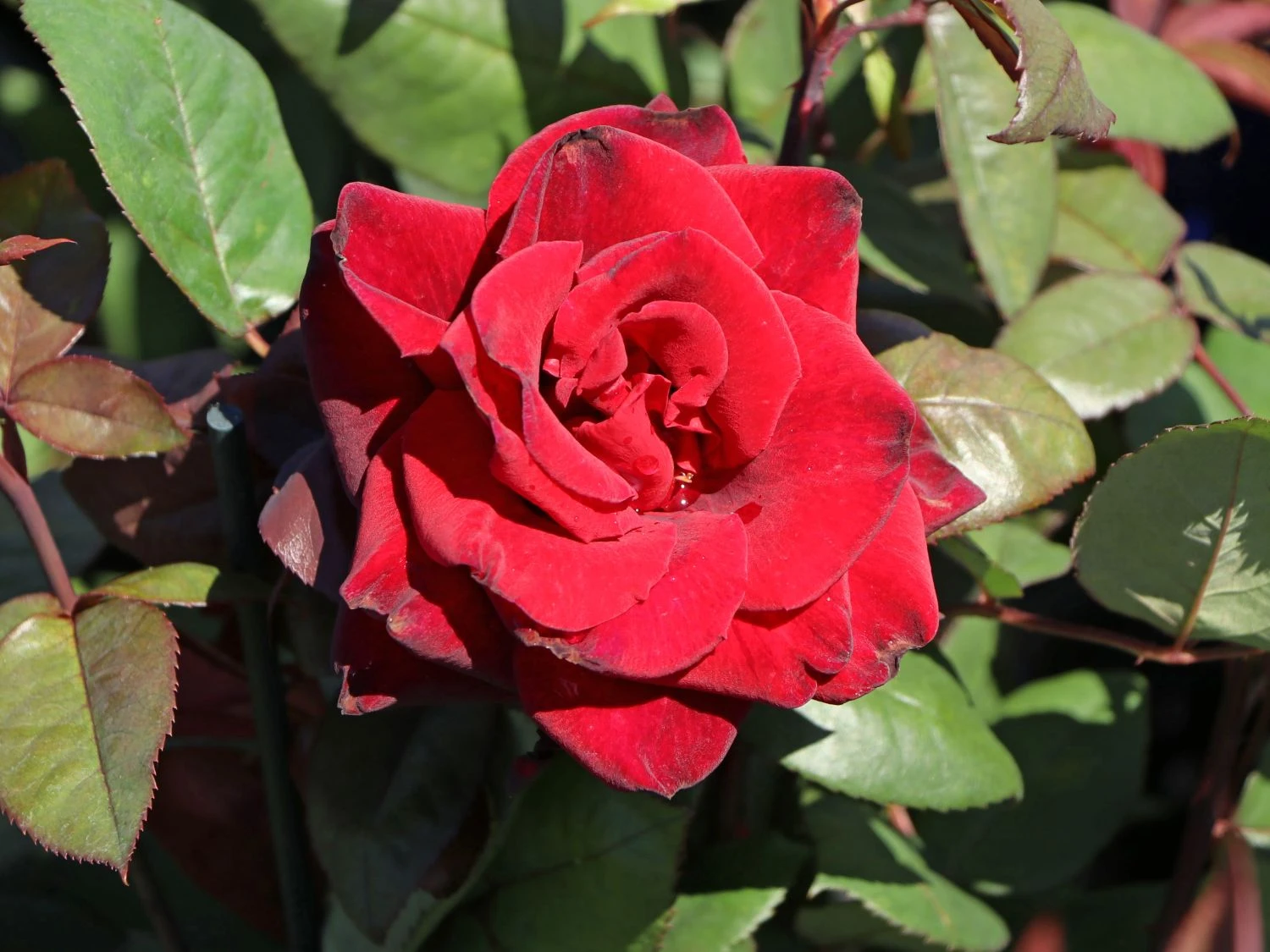 Die öfterblühende Edelrose ‚Barkarole‘ bildet im Mai feste, beinahe schwarze Knospen aus, die im Juni in einem tiefen Dunkelrot erblühen. Die mittelgroßen, gut gefüllten Blüten weisen eine nahezu perfekte Form auf, der Samteffekt der Blütenblätter verspricht puren Luxus. Abgerundet wird das Bild von (bot.) Rosa ‚Barkarole‘ durch ihren betörenden Duft. Die dunklen, edlen Blüten der Edelrose ‚Barkarole‘ werden von üppigem, dunkelgrünem Laub mit dunkelroten Blattadern umspielt.