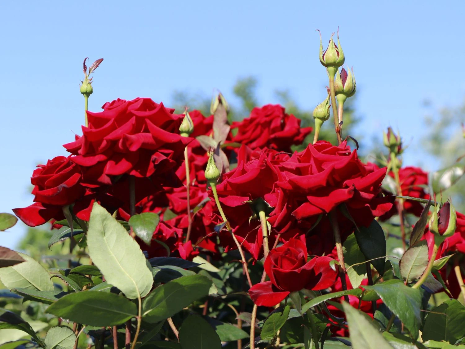 Einfach bezaubernd, diese Edelrose ‚Black Magic‘ ®! Sich langsam öffnende Knospen machen gespannt auf das, was folgen wird. Und die samtig dunkelroten Blüten enttäuschen nicht, auch wenn ihnen der Duft fehlt. Dafür kann man diese Sorte zweifelsfrei als reichblühend bezeichnen.