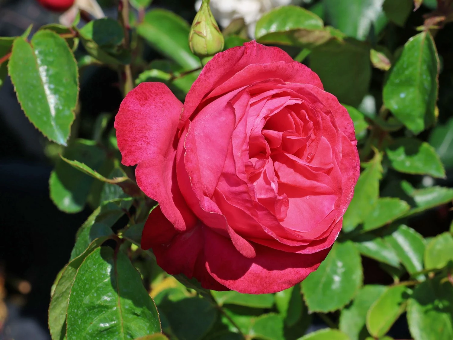 Entzückt erwartet der Gärtner ab Juni das Aufblühen der Knospen. Die Blütenblätter entfalten sich zu einem harmonischen Anblick und stehen dicht an dicht. Üppig gefüllt und mit gekerbten Blütenblättern und erwecken die Geschöpfe einen romantischen Eindruck, den der intensiven Rotton unterstützt. Die stark gefüllten Blüten der Rose duften schwach und unterstreichen die Eleganz dieser Rose. Die Edelrose ‚Cherry Lady‘ ® gehört nicht ohne Grund zur Eleganza ® Kollektion aus dem Hause Kordes. Ihre erlesenen Blüten zeigen sich auf langen Stielen und sind damit wunderbar als Schnittblumen geeignet. Ein Strauch mit den Blüten der Rosa ‚Cherry Lady‘ ® bringt den Sommer ins Haus und schmückt jeden Raum vortrefflich. Solche Eleganz hat ihren Preis! Die Edelrose ‚Cherry Lady‘ ® ist nur bedingt winterhart und verlangt in den kalten Monaten nach einem adäquaten Winterschutz. Der Gärtner ist gut damit beraten, den unteren Bereich der Triebe mit Erde oder Kompost anzuhäufeln und die oberen Triebe mit einem Vlies zu umwickeln. So lassen sich Schäden durch Frost und ein Zurückfrieren der Triebe großenteils vermeiden. Auch die Wahl eines geschützten Standortes, beispielsweise vor einer wind-abgewandten Mauer, sorgt für ein gutes Gedeihen der Rose. Während warmer und trockener Wetterlagen gießt der Gärtner die Rosa ‚Cherry Lady‘ ® in den Morgen- und Abendstunden. Es ist ratsam, das Gießwasser nicht über Blätter und Blüten zu verteilen, sondern gezielt auf dem Wurzelbereich auszubringen.
