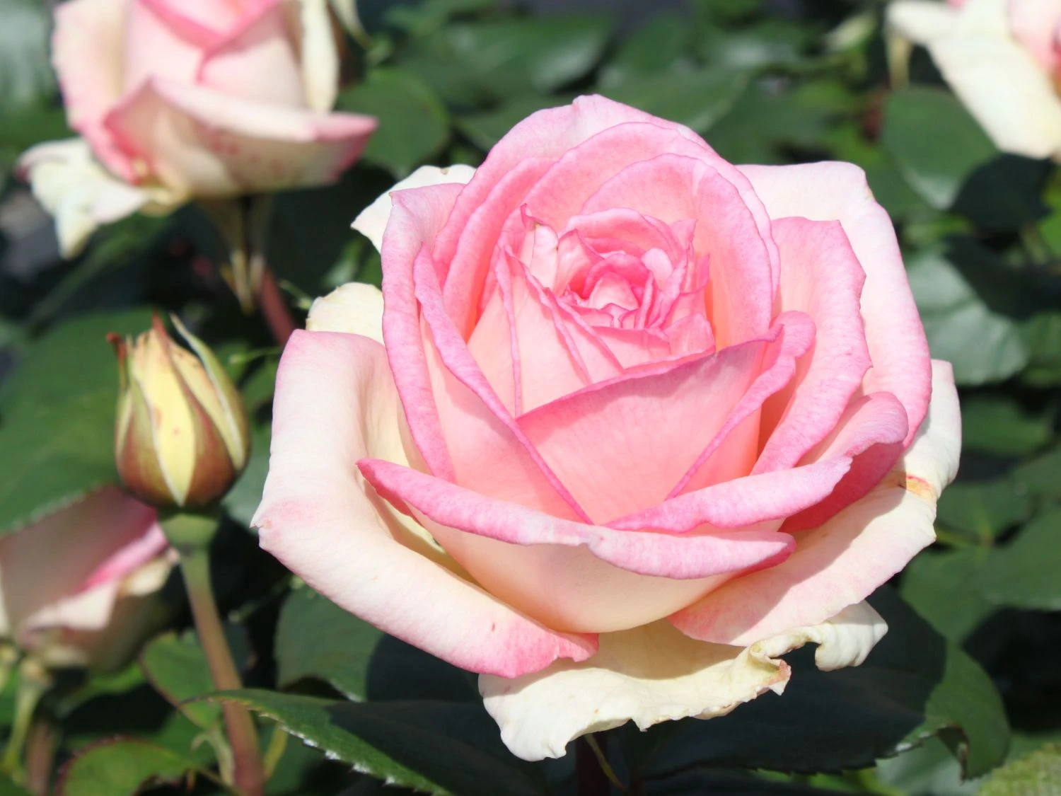 Mit der Edelrose ‚Souvenir de Baden-Baden‘ hat der Züchter W. Kordes‘ Söhne eine außergewöhnliche Pflanze geschaffen. Bei dieser eleganten Schönheit handelt es sich um eine seltene ADR-Rose. Die Auszeichnung steht für höchste Qualitätsansprüche bei Gartenrosen und ist eine der härtesten Rosenprüfungen der Welt. Schon auf den ersten Blick sind die Vorzüge von (bot.) Rosa ‚Souvenir de Baden-Baden‘ ADR-Rose ersichtlich. Die langstielige Rose verfügt über große, stark gefüllte Blüten mit gekerbten Blütenblättern in der zarten Farbkombination creme-rosa. Durch ihre lange Haltbarkeit und einen intensiven Duft eignen sich die Blüten hervorragend zur Präsentation in der Vase oder in einem Blumenarrangement. Im Garten setzen die dunkelgrünen Blätter des aufrecht und buschig wachsenden Strauches die Blüten der Edelrose ‚Souvenir de Baden-Baden‘ eindrucksvoll in Szene.