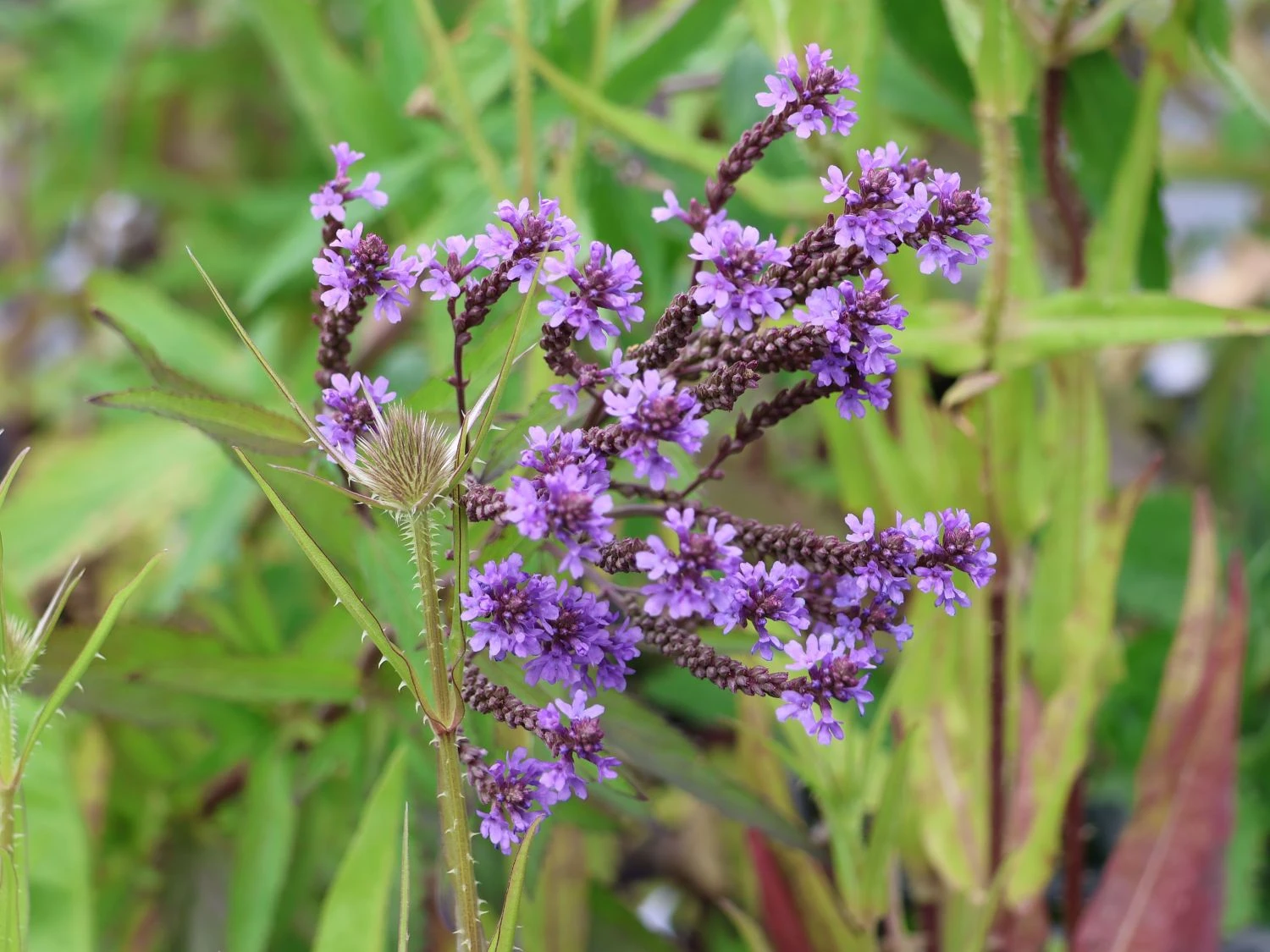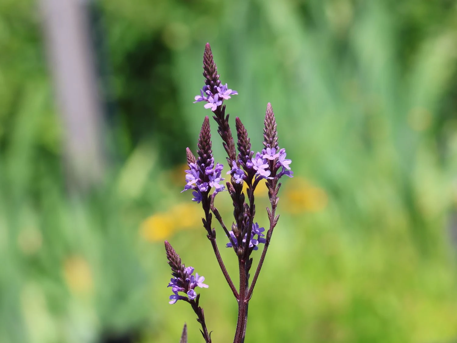 Das Eisenkraut ‚Blue Spires‘ mit dem botanischen Namen Verbena hastata ‚Blue Spires‘ kommt aus der Familie der Verbenaceae und der Pflanzengruppe der Stauden. Ihr deutscher Name ist Eisenkraut oder Verbene. Ursprünglich war es eine nordamerikanische Wildstaude, die jetzt aber in Europa heimisch ist. Häufig findet man sie in Natur- oder Bauerngärten, wo sie sich dank ihrer langen Blütezeit von Juni bis September großer Beliebtheit erfreut. Auch als Schnittpflanze hält sie sich mehrere Tage in einer Vase und verzaubert dort, ebenso, wie auf Freiflächen oder in Bauerngärten ihren unnachahmlichen Charme. Das als Zierpflanze geltende Eisenkraut gedeiht auf normal durchlässigen, neutralen, frischen bis mäßig feuchten Böden optimal an sonniger Stelle und dankt es mit einer mehrjährigen Blüte.