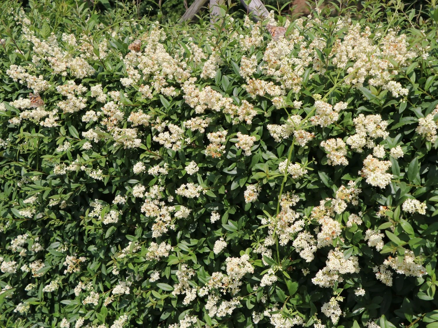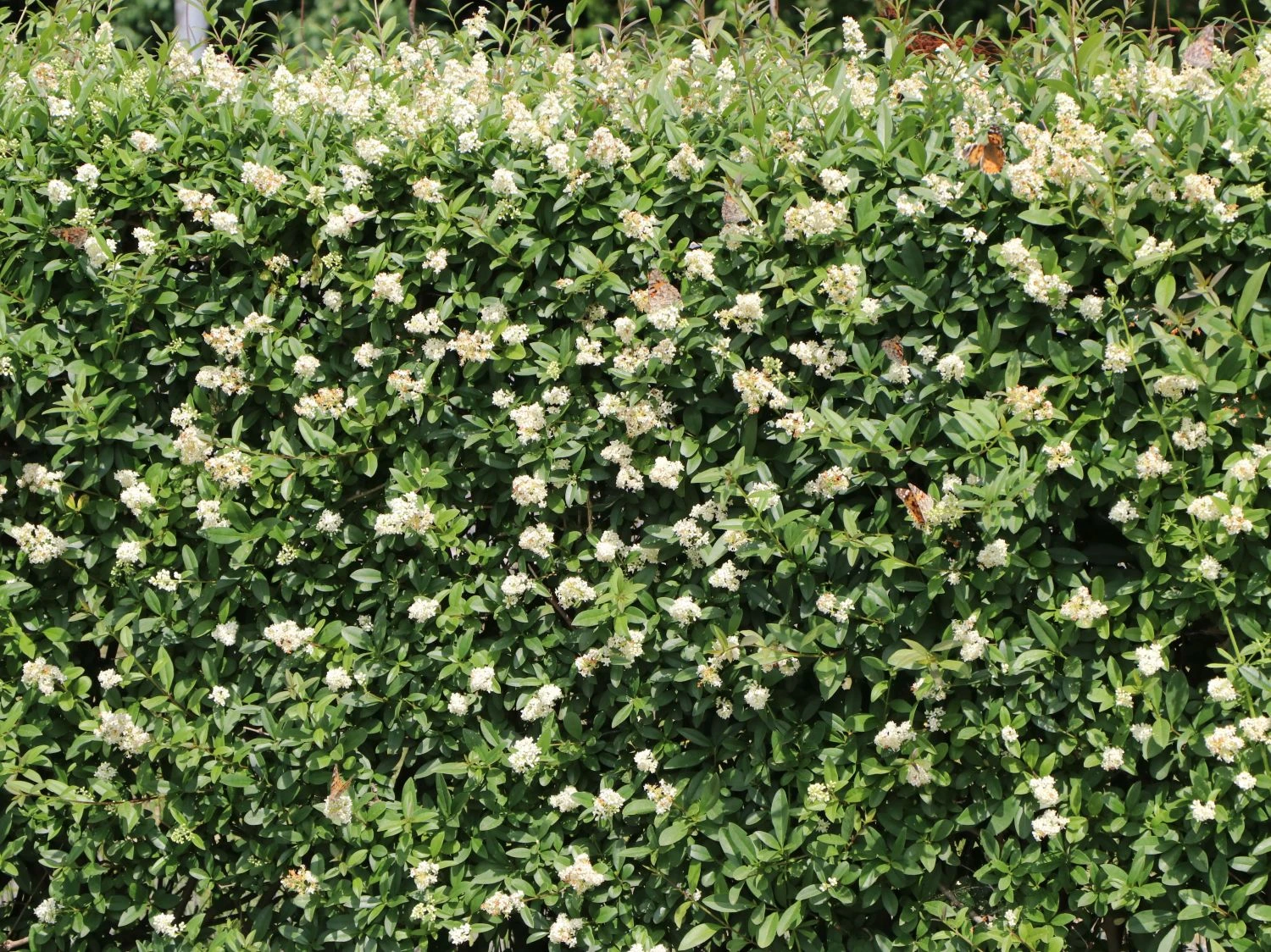Aus diesem schnell wachsenden Liguster lassen sich natürliche Grundstücks- und Gartengrenzen formen. In unterschiedlichsten Wuchsformen begegnet uns der Ligustrum vulgare. Zu einem straff-aufrechten Großstrauch entwickelt er sich an einem freien Standort. Kleiner bleibt er im Schatten größerer Gehölze. Mehr in die Breite wachsend, entwickelt er sich hier als dichtes Unterholz. Der Nektar der Ligusterblüten lockt unzählige Fliegen- und Bienenarten in den Garten. Furchenbienen, Sandbienen und verschiedene Arten von Honigbienen nutzen die reichhaltige Pollenquelle. Das gehaltvolle Pollenbuffet ist ganztags im Angebot. Allerdings ist die Bestzeit zwischen sechs und acht Uhr morgens. Auch verschiedene Schmetterlingsarten suchen fröhlich flatternd die duftenden Blüten des Gemeinen Ligusters / Gewöhnlichen Ligusters auf. Etwa 20 Vogelarten und verschiedene Nagetiere sind glücklich über das Angebot der im Herbst reifen Früchte. Oft bis in den Spätwinter hinein, verzehren sie die Beeren. Durch das Ausscheiden erfolgt das natürliche Ausbreiten der Pflanze. Frost fördert das Keimen der Samen.