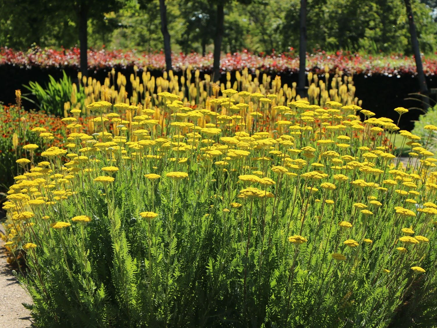Die Hohe Goldgarbe ‚Cloth of Gold‘ lässt sich auf unterschiedlichste Art und Weise verwenden. Die wunderschöne Staude glänzt vor allem mit ihren leuchtend goldgelben Blüten, die bereits von weitem direkt die volle Aufmerksamkeit auf sich ziehen. Der Blütenstand von (bot.) Achillea filipendulina ‚Cloth of Gold‘, der aufgrund seiner Größe auffallend und hervorstechend ist, überzeugt zudem mit einem intensiven Duft. Achillea filipendulina ist weithin als Goldgarbe, Farnblättrige Schafgarbe, Hohe Schafgarbe, Hohe Garbe, Gold-Schafgarbe oder auch Gelbe Schafgarbe bekannt. Die Hohe Goldgarbe ‚Cloth of Gold‘ bietet an ihrem Standort einen traumhaften Anblick.