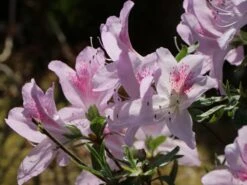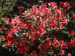 Die Japanische Azalee ‚Chipmunk‘ fasziniert mit ihren einzigartigen Blüten und dem dekorativen Laub, das den Garten das ganze Jahr über schmückt. Ihr prächtiger Flor erscheint im Zeitraum vom 6. bis zum 20. Juni. In dieser Zeit ist die gesamte Pflanze mit üppigen Blütendolden übersät. Die Einzelblüten leuchten in einem intensiven Karminrosa. Bei näherem Hinsehen überraschen sie mit einer filigranen, roten Zeichnung im oberen Bereich der Blütenblätter. Die hell funkelnden Blüten bilden einen kräftigen Kontrast zu dem glänzenden Dunkelgrün der Blätter. Rhododendron obtusum ‚Chipmunk‘ besitzt robustes, immergrünes Laub. Seine Blätter sind elliptisch geformt, weisen einen glatten Rand auf und sind vorn zugespitzt. Sie haften auch im Winter gut an den Zweigen. Die Japanische Azalee ‚Chipmunk‘ wächst flach, kompakt und dichtbuschig. Da sie sich breiter als hoch entwickelt, eignet sich sich perfekt zum Bepflanzen von Flächen. Sie erreicht eine Höhe von 30 bis 40 cm und eine Breite von 70 bis 90 cm. Jährlich legt sie um die 4 cm an Höhe und Breite hinzu.