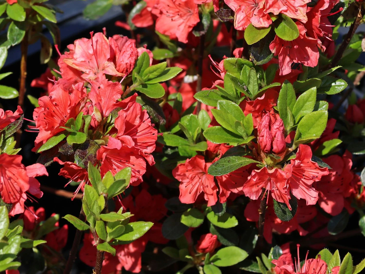 Die Japanische Azalee ‚Satschiko‘ ist eine kleine dichtkompakte, wintergrüne Pflanze. Sie erreicht eine Höhe von ca. 40 cm und eine Breite von ca. 80 cm.