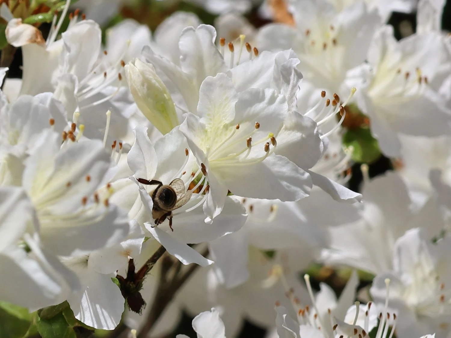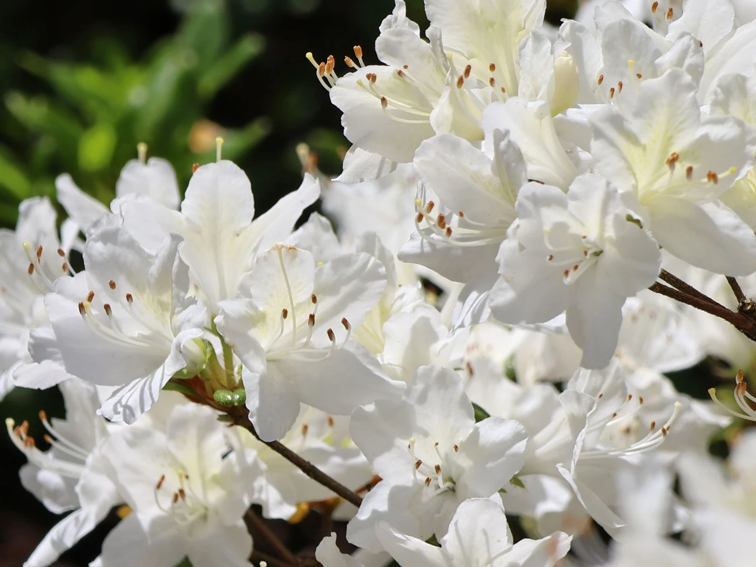 Die Japanische Azalee ‚Schneewittchen‘ trägt von Mai bis Juni reinweiße, wunderschöne Blüten in einer erstaunlichen Vielzahl. Die Einzelblüten weisen in ihrem Inneren eine dezente gelbgrüne Zeichnung auf und erreichen einen Durchmesser von bis zu 4 cm.
