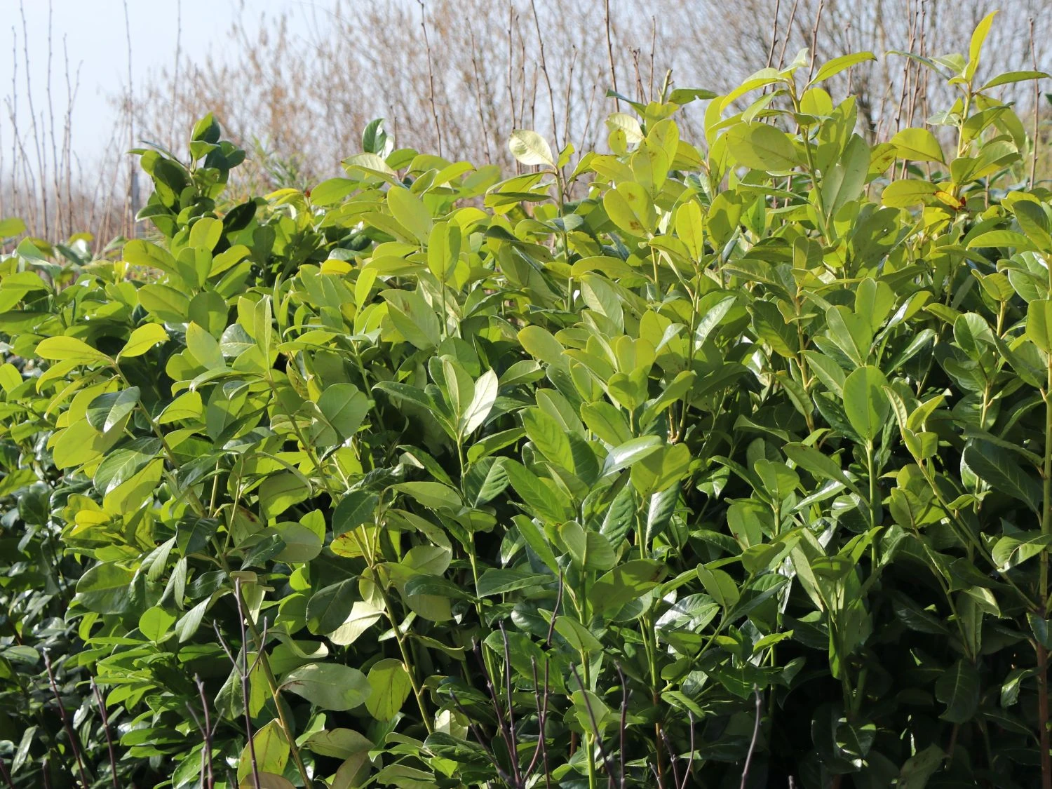 Das ganze Jahr über ist diese Kirschlorbeere ein immergrünes Gewächs, auf das Gärtner zählen können. Ihr großes Laub macht sie zu einer Besonderheit, denn damit schafft sie in ihrem aufrechten Wuchs eine blickdichte Mauer. Weiterhin sind ihre Blätter heller als die von allen anderen Lorbeerkirschen und setzen damit lichtvolle Akzente in sonst dunkle Bereiche. Im Winter bilden die frisch-grünen Blätter eine willkommene Abwechslung zur sonst sehr tristen und sich scheinbar im Winterschlaf befindenden Natur. Aufgrund dieser Optik und darüber hinaus auch wegen ihrer überzeugenden Eigenschaften stellt die Lorbeerkirsche ‚Rotundifolia‘ einen beliebten Klassiker unter den Heckenpflanzen dar.