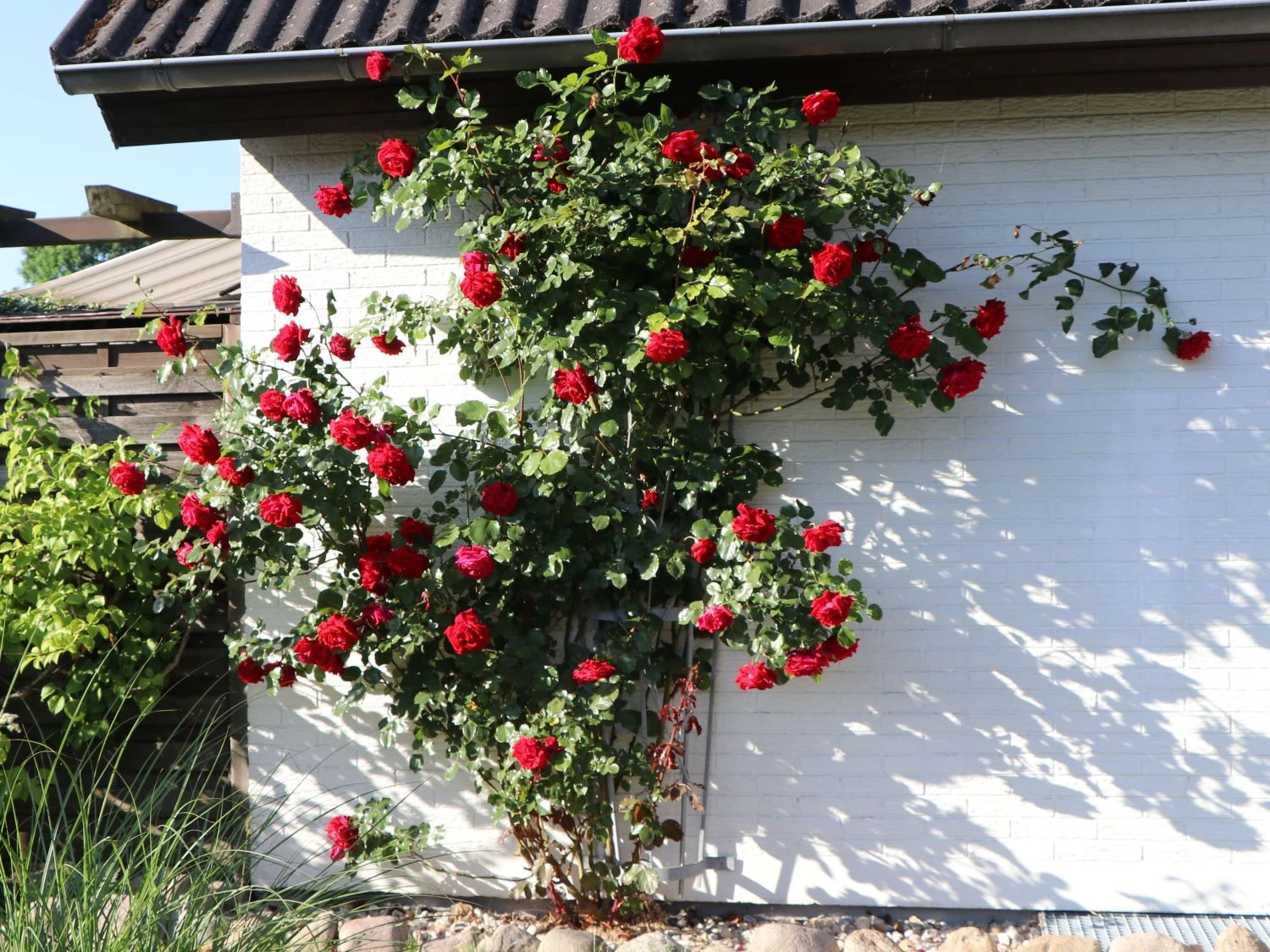 Die Kletterrose ‚Sympathie‘ ® gewinnt jedermanns Zuneigung auf den ersten Blick! Die Blüten erscheinen in der Zeit von Juni bis August und zeigen sich in einem warmen Rot. Die einzelnen Blüten sind dicht gefüllt und stehen büschelweise in Trugdolden zusammen. Die Wuchshöhe von (bot.) Rosa ‚Sympathie‘ ® entwickelt sich aufrecht und mit starken Trieben auf 200 bis 500 cm. In der Breite erreicht sie etwa 100 bis 150 cm. Der Wuchs ist aufrecht und buschig. Sobald sich die vielversprechenden Knospen der Kletterrose ‚Sympathie‘ ® zu öffnen beginnen, verströmen die Blüten einen herrlichen Duft. Daneben erscheint das gefiederte und gesägte Blattwerk, das in seinem sanften Dunkelgrün einen schönen Kontrast zu den auffallenden Blüten bildet. Diese schöne Sorte brilliert im Bauern- oder Blumengarten sowie im Rosengarten oder in größeren Parkanlagen.