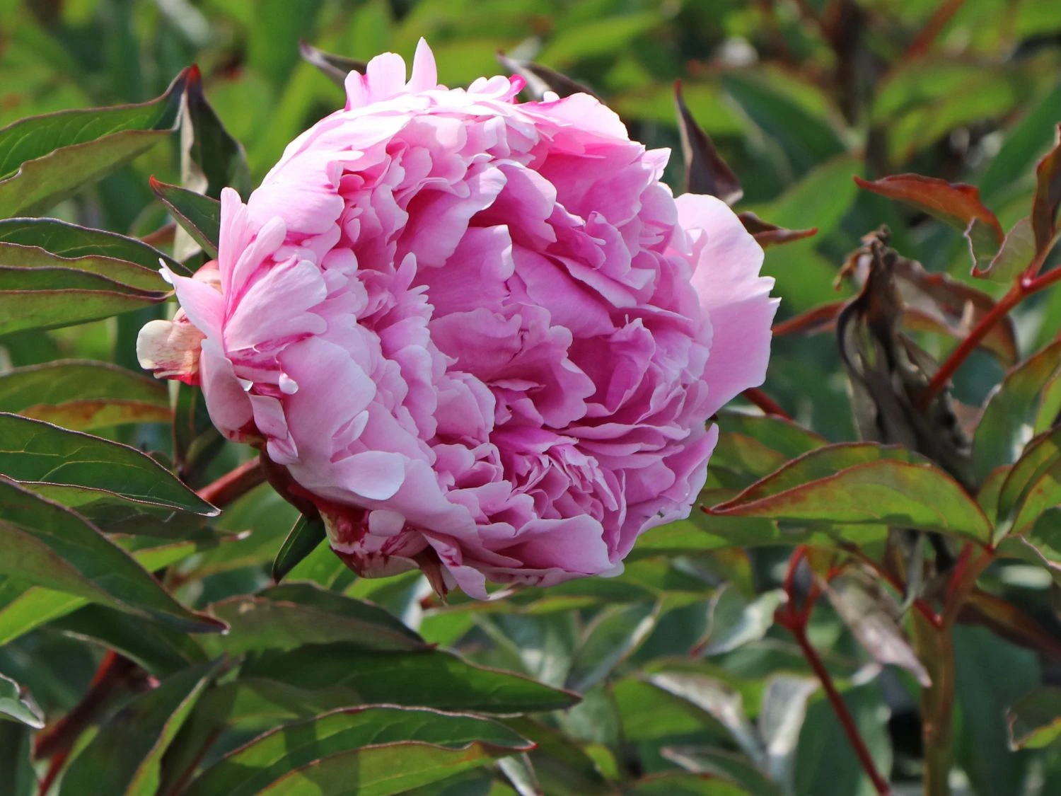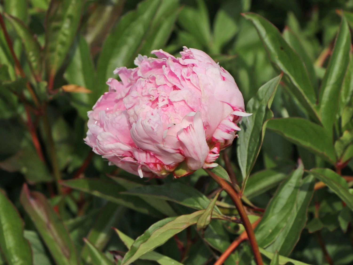Die Pfingstrose ‚Sarah Bernhardt‘ schmückt mit zauberhaft gefüllten Blüten jedes Gartenbeet im Frühsommer. Kein geringerer als der berühmte Paeonien-Fachmann Victor Lemoine züchtete 1906 diese wunderschöne Sorte. Mit ihrem Namen würdigte er eine gefeierte Schauspielerin der damaligen Zeit. Ihr botanischer Name Paeonia lactiflora ‚Sarah Bernhardt‘ erinnert an den Götterarzt Paeon in der griechischen Mythologie. Die Wildvorkommen der wunderschönen Pfingstrose stammen aus China, weshalb die Pflanzen auch Chinesische oder Asiatische Pfingstrose heißen. Viele Gärtner kennen sie auch als Milchweiße Pingstrose. Seit Jahrhunderten sind sie dort in Kultur, zunächst als Heilmittel, später als prestigeträchtige Zierpflanze von Kaiser und Adel. Im Mai und Juni hat die Pfingstrose ‚Sarah Bernhardt‘ jedes Jahr ihren gefeierten Auftritt in den Gartenbeeten der Pflanzenliebhaber. Sie ist von zauberhafter Anmut, wenn sich ihre Blüten öffnen. Die rosenähnlichen Blüten entstehen aus pomponartigen Knospen, die langsam anschwellen und sich unter dem Beifall der Paeonienliebhaber öffnen. Dem Betrachter geht bei diesem Anblick das Herz über! Diese schöne Päonie ist mit ihren großen Blüten von hinreißender Anmut. Ein eleganter, rosenartiger Duft umspielt die Blütenblätter. Zahlreiche Insekten fühlen sich eingeladen und umschwirren die herrliche Pfingstrose, sobald sie in voller Blüte steht. Die mit schier unzähligen zarten Blättern gefüllten Blüten sind eine Augenweide und das Highlight in jedem Frühsommerbeet! Die rosa farbigen Blüten der Paeonia lactiflora ‚Sarah Bernhardt‘ stehen auf langen, schlanken Stielen. Die attraktive, buschig wachsende Frühlingsstaude erreicht eine Höhe von 100 bis 110 Zentimetern. Die austreibenden Triebe sind rötlich und wechseln im Verlauf des Wachstums in ein schönes Dunkelgrün. Damit sie durch die Schwere der Blüten oder bei Regen nicht brechen, stützt der sorgsame Pflanzenfreund die Blütenpracht mit einem Staudenring. Das dichte Laub ist mehrteilig und betont mit seinem dunklen Grün die herrlichen Blüten.
