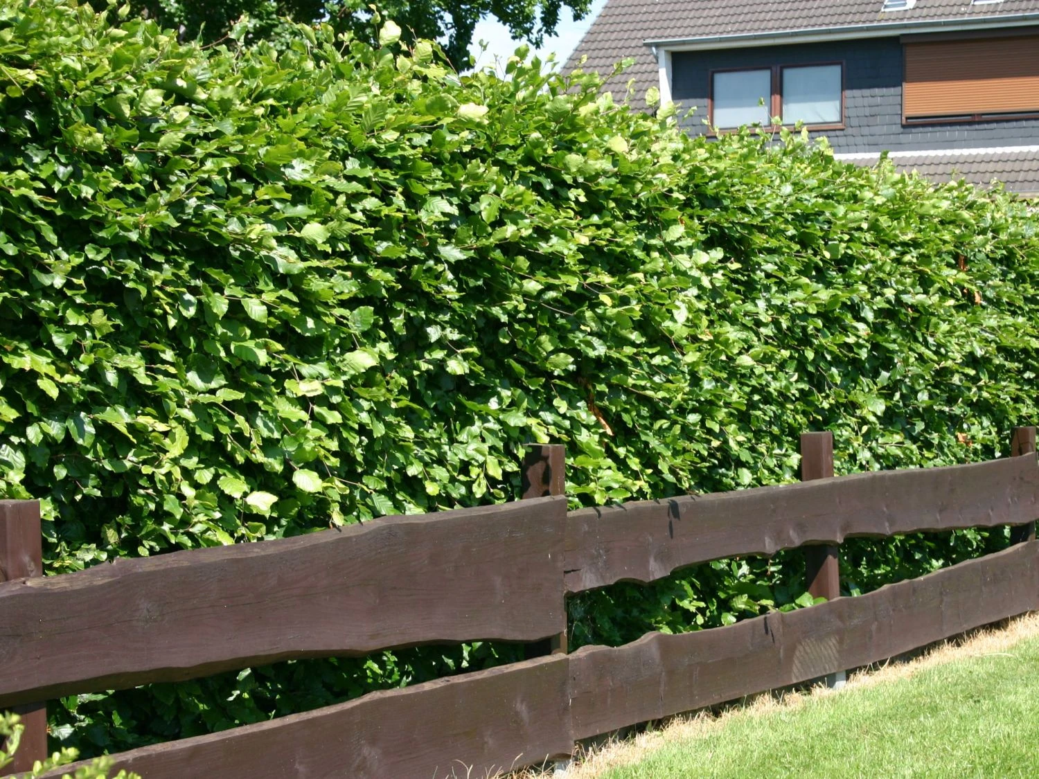 Als Waldbaum bekannt, ist die Rotbuche als Heckenpflanze außerordentlich beliebt. Dieses traditionelle Forstgehölz bildet einzigartig schöne Hecken. Mit ihrem starken Wuchs und dem dichten Laub bildet sie Hecken, die neugierige Blicke fern halten. Ihr wunderschönes glattes und grünes Blattwerk haucht der Hecke Vitalität ein. Im Herbst verfärben sich die Blätter der Rotbuche in gelborange bis braun. Der Wuchs der (bot.) Fagus sylvatica ist dicht und verzweigt. Die Pflanze erreicht eine Höhe von zwei bis drei Metern. In der Breite erwartet der Gärtner 100 bis 150 Zentimeter. Mit einem jährlichen Zuwachs von 30 bis 50 Zentimetern erhält der Gärtner zügig eine hohe Grundstücksgrenze. Vögeln bietet dieses schöne Gewächs einen gerne genutzten Brutplatz.
