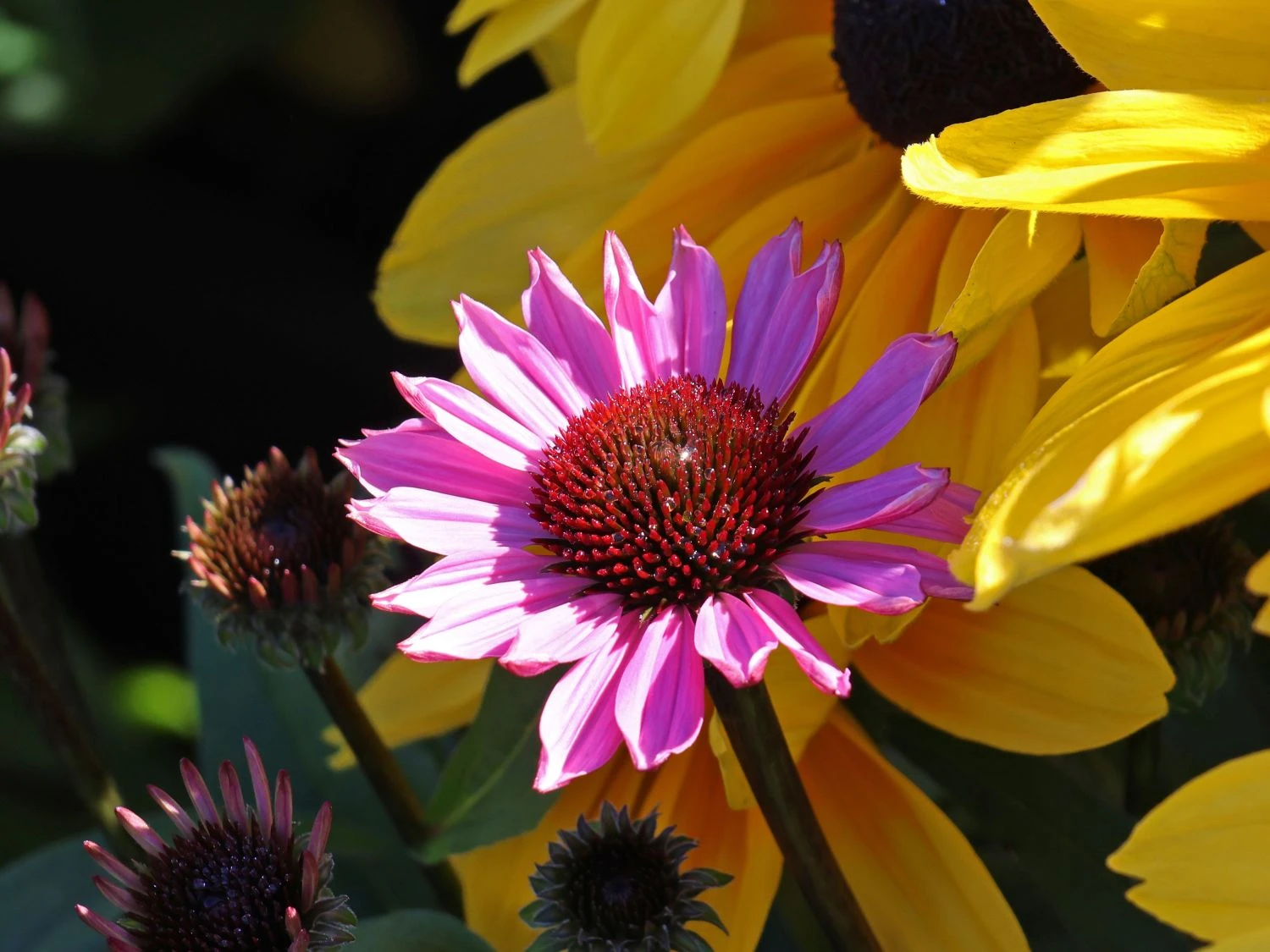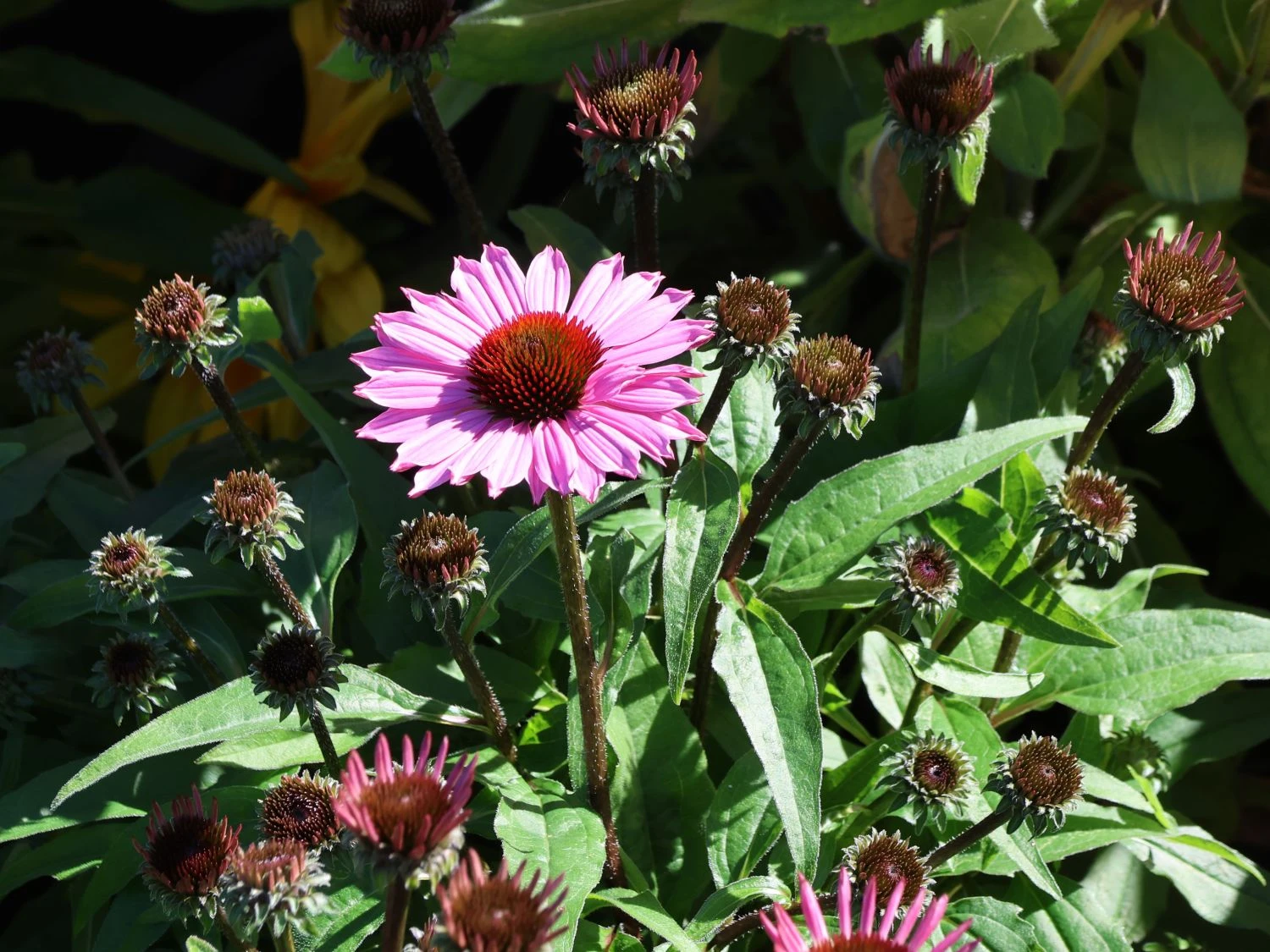 Der Scheinsonnenhut ‚SunMagic Vintage Fuchsia‘ ® ist ein wunderschöner Dauerblüher, der sich durch den ganzen Sommer hindurch, und sogar noch bis in den Herbst hinein, vielblütig zeigt. Daneben ist die Pflanze winterhart und sorgt für viele Jahre für fröhliche Farbe im Beet und in der Rabatte. Echinacea purpurea ‚SunMagic Vintage Fuchsia‘ ® ist eine gesellige Pflanze und wirkt im gemischten Staudenbeet besonders schön neben Pflanzen wie Pampasgras, Schafgarbe oder auch der Sonnenbraut. Sie alle lieben die sonnigen bis halbschattigen Bereiche des Gartens und einen nährstoffreichen, lockeren, humosen und gut durchlässigen Boden. Die mittelgroßen Blüten erreichen einen Durchmesser von etwa fünf bis zehn Zentimeter. Die Pflanze erreicht eine Wuchshöhe von 30 bis 45 Zentimeter sowie eine Breite von 30 bis 40 Zentimeter. Um eine größere Fläche mit dem Scheinsonnenhut ‚SunMagic Vintage Fuchsia‘ ® zu bepflanzen, sind bis zu vier Exemplare bei einem Pflanzabstand von rund 35 Zentimetern auf einer Fläche von einem Quadratmeter zu empfehlen. Die mittelgrünen Blätter der Pflanze sind gezähnt und lanzettlich geformt. Da sich der Scheinsonnenhut ‚SunMagic Vintage Fuchsia‘ ® auch als wunderbare Schnittpflanze eignet, kommen die schönen Blüten nicht nur im Beet oder Kübel, sondern auch in der Vase wunderschön zur Geltung.