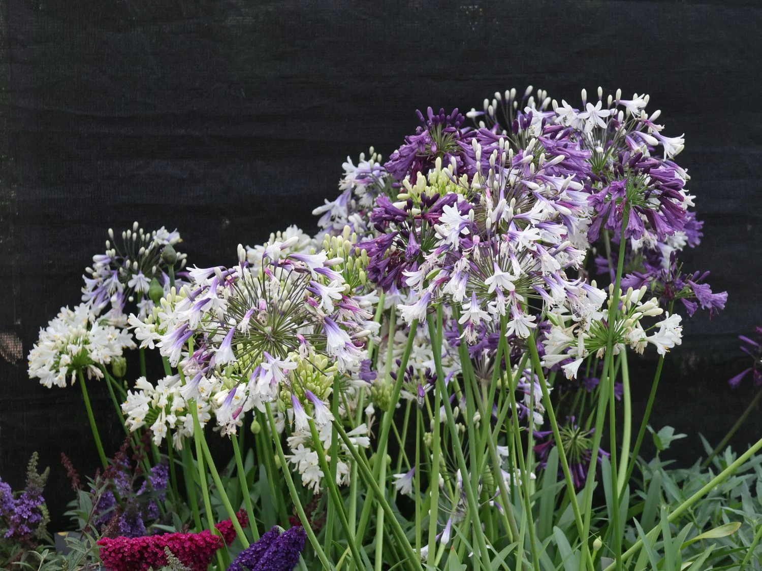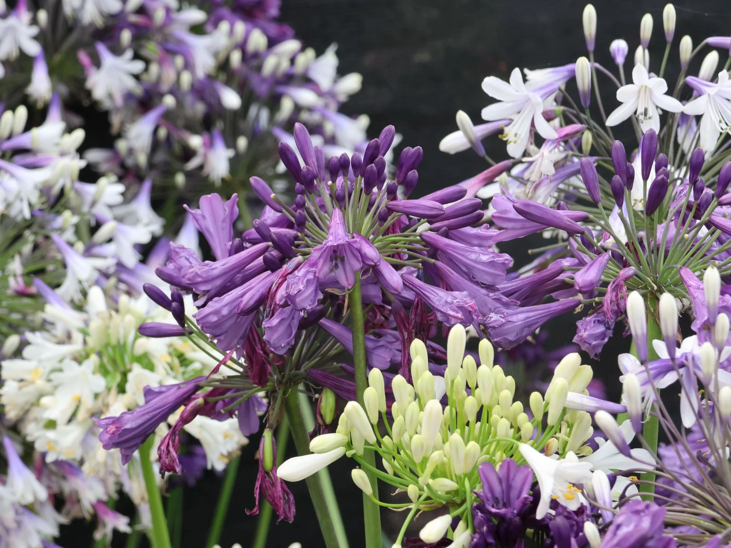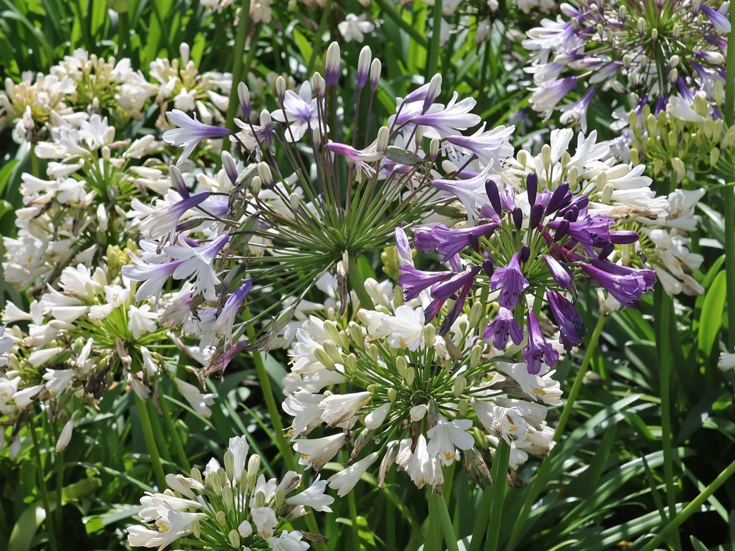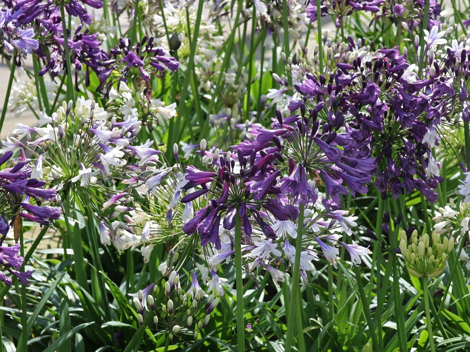 Die Pflanzen der Gattung Agapanthus sind auch als Liebesblumen bekannt. Ursprünglich stammen sie aus Südafrika und zählen zur Familie der Amaryllisgewächse (Amaryllidaceae). In ihrer südafrikanischen Heimat sind diese Pflanzen gut winterhart, die Winter sind dort weniger frostig als bei uns. In unseren Breiten ist ratsam die die Schmucklilie ‚Three Sisters‘ ® vor Frösten zu bewahren. Daher sollte eine im Kübel kultivierte Pflanze besser an einem geschützten Standort überwintern. Agapanthus Hybride ‚Three Sisters‘ ® wächst am liebsten in einem Kübel und genießt die sonnigen bis halbschattigen Bereiche. Eigentlich ist die Schmucklilie ‚Three Sisters‘ ® recht pflegeleicht. Jedoch sollten ein paar Fehler vermieden werden. Das Wurzelwerk der Schmucklilie mag es gerne eng um sich herum haben. Daher sollten in Kübel kultivierte Exemplare nicht zu vorschnell umgetopft werden. Am besten erst dann, wenn sich eine komplette Durchwurzelung des Wurzelballens zeigt. In diesem Fall ist die vormals umgebende Erde natürlich bereits ziemlich verbraucht, daher steigt der Wasserbedarf der Pflanze. Der nächste Topf sollte nur minimal größer sein als der vorherige, um der Pflanze ihre benötige Enge zu ermöglichen. Der nächste Fehler schleicht sich gerne bei der Überwinterung ein. Schmucklilien mögen es im winter kühl und frostfrei. Das winterliche Quartier bietet ideale Bedingungen, wenn die Temperaturen zwischen 0°C und 5°C liegen. Steigen die Temperaturen auf über 10°C an, setzt sie im Folgejahr deutlich weniger Blüten an, weil sie im Winter nicht ausreichend zur Ruhe kam.