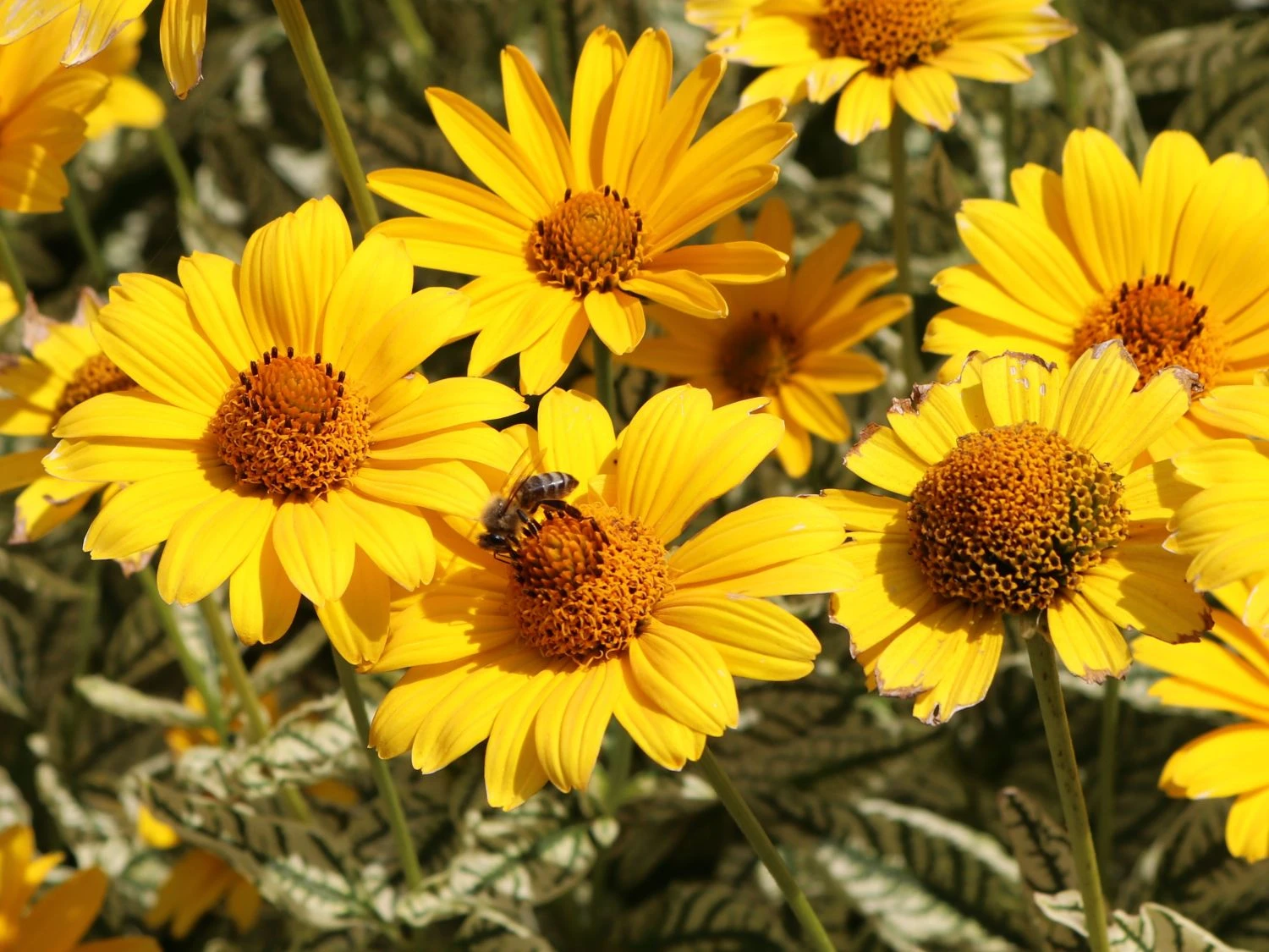 Das Sonnenauge ‚Lorraine Sunshine‘ hat einen liebenswerten Charme. Wie kleine Sonnen präsentieren sich die schönen Blüten der Pflanze in ihrer leuchtend gelben Farbe und strahlen somit durch den gesamten Gartenbereich. (Bot.) Heliopsis scabra ‚Lorraine ‚Sunshine‘ streckt ihre langen, starken, grünen Stängel aufrecht der Sonne entgegen. An ihnen sitzen die eiförmigen silbrig-grünen Blätter, die sich mit dünnen grünlichen Adern zieren. Direkt oberhalb der starken Stängel sitzen die strahlenförmigen Einzelblüten der als Garten-Sonnenauge bekannten Staude. Die einfachen Blüten vom Sonnenauge ‚Lorraine Sunshine‘ sind in ein leuchtendes Gelb getaucht und zeigen sich von Juni bis August im Garten.