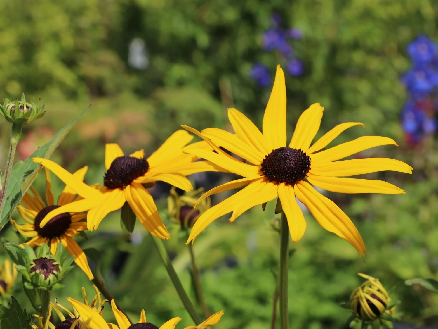 Mit seinen auffällig leuchtenden Blüten bringt er den ganzen Sommer über Farbe und Frische in den Garten. Der Sonnenhut ‚Early Bird Gold‘ ® ist eine besonders großblühende Sorte. Seine charakteristische, schwarze Blütenmitte wird von tiefgelben Blütenblättern umrahmt. Durch diesen attraktiven Farbkontrast strahlen seine sattgelben Blüten noch intensiver. Die eiförmigen, tiefgrünen Laubblätter runden die Farbkombination harmonisch ab. Seine positiven Eigenschaften machen ihn äußerst attraktiv. Die Rudbeckia fulgida ‚Early Bird Gold‘ ® ist bei Gartenfreunden äußerst populär, weil sie vielseitig verwendbar ist. Mit ihrem buschigen Wuchs und der Höhe von bis zu 60 Zentimetern, eignet sie sich hervorragend als Beetstaude. An Gehölzrändern mit immergrünen Gehölzen kommt sie äußerst gut zur Geltung. Sie gehört zu den gern verwendeten Stauden in Parks und auf öffentlichen Grünflächen. Besitzer von Naturgärten pflanzen sie oft mit Gräsern zusammen. In dieser Verbindung sorgt sie für eine ursprüngliche, steppenartige Atmosphäre. In dichten Tuffs gepflanzt, wirkt der Sonnenhut ‚Early Bird Gold‘ attraktiv auf einer Freifläche im Garten. Mit diversen Beetstauden kombiniert, ist er häufig in traditionellen Bauerngärten anzutreffen. Als Schnittstaude ist die Rudbeckia fulgida ‚Early Bird Gold‘ ® ebenfalls optimal geeignet. In einem farbenfrohen Sommerstrauß oder als Bestandteil von Gestecken ist sie ein wunderschöner Blickfang.