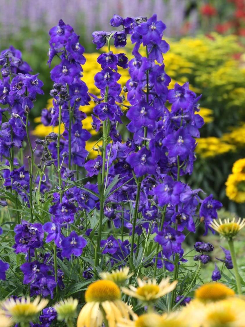 Der ideale Standort für den Verzweigten Rittersporn ‚Atlantis‘ ist ein vollsonnig gelegener Standort. Die Pflanze liebt die Wärme und das Licht. Am schönsten kommt die Pflanze in einem gemischten Staudenbeet oder auf Freiflächen mit Wildstaudencharakter zur Geltung. Ein frischer bis feuchter, nährstoffreicher, locker und gut durchlässiger Boden bietet die perfekten Voraussetzungen für einen gesunden Wuchs. Delphinium x belladonna ‚Atlantis‘ ist sehr gut winterhart. Die Pflanze steht Temperaturen von bis zu -28°C ohne einen Winterschutz durch. Die blauen Blüten sind nicht nur für das menschliche Auge ungeheuer reizvoll. Auch Bienen, Hummeln und andere Insekten nehmen die Blütenfarbe und den Duft des Nektars wahr. Der Verzweigte Rittersporn ‚Atlantis‘ ist eine beliebte Nahrungsquelle vieler Insekten. Bei einer flächigen Bepflanzung passen bei einem Pflanzabstand von rund 50 Zentimetern bis zu vier Exemplare auf einen Quadratmeter.